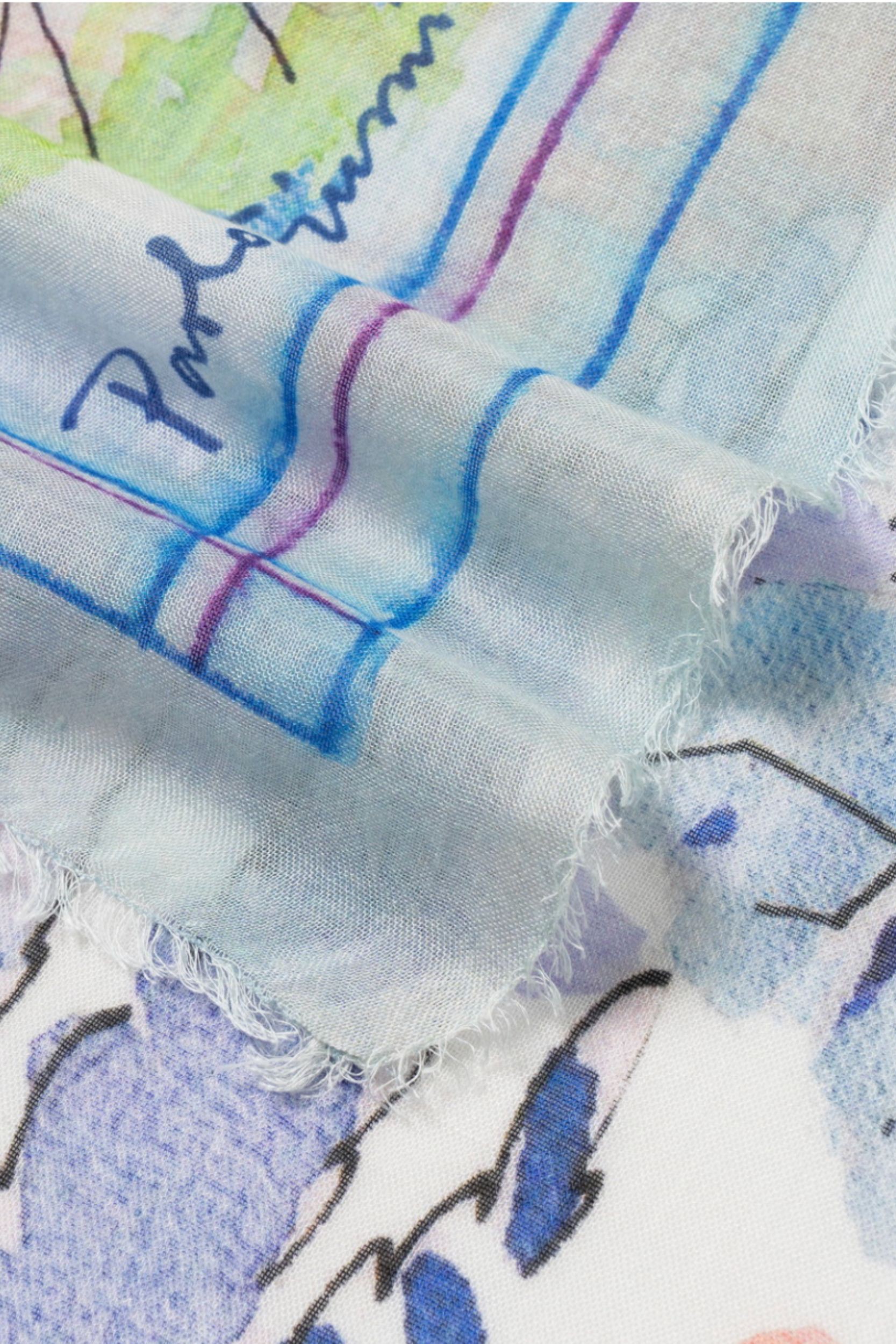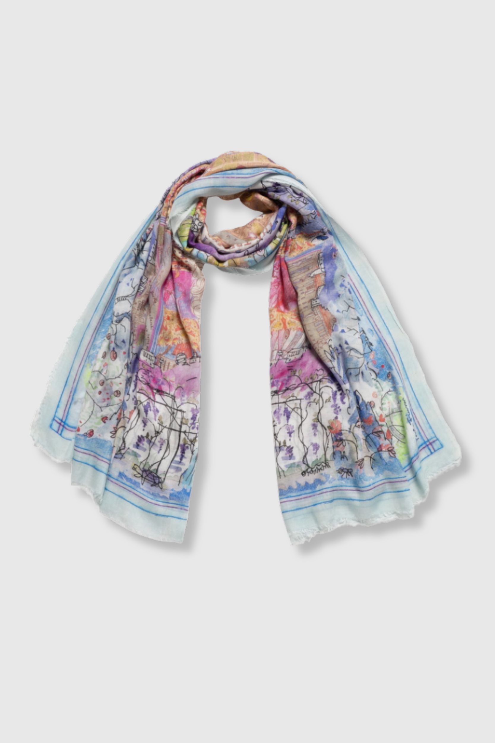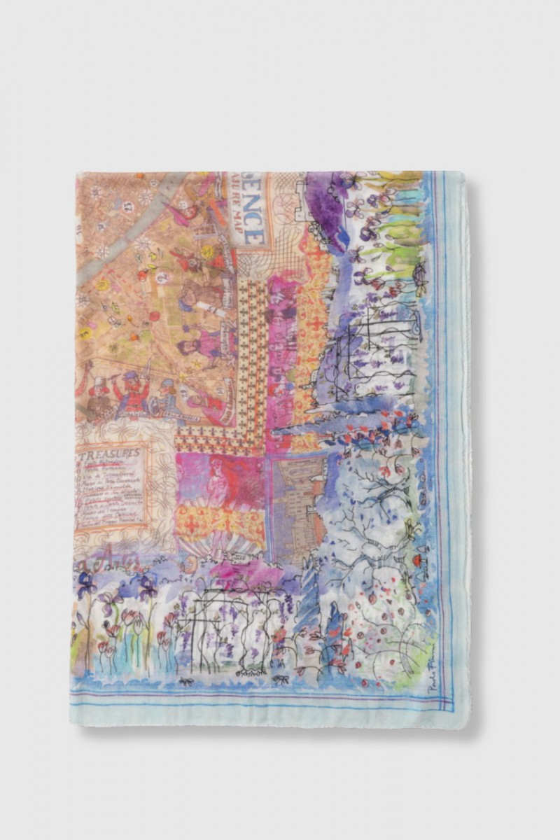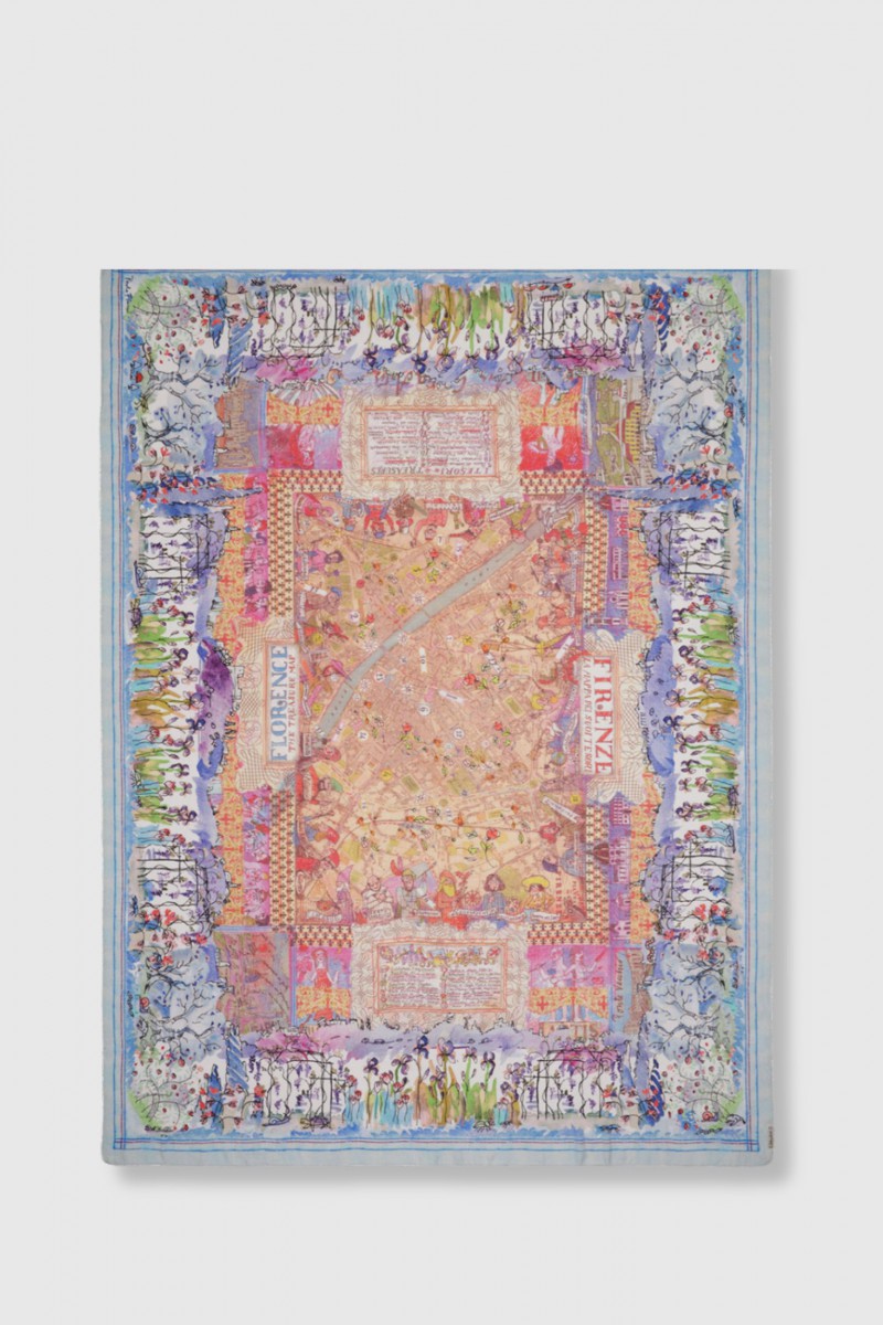 This Faliero Sarti scarf features an artistic print inspired by an illustrated map of Florence, paying tribute to the cultural and historical heritage of the Italian city. The design combines architectural drawings, lively scenes and decorative motifs in a delicate multicolour pastel palette.