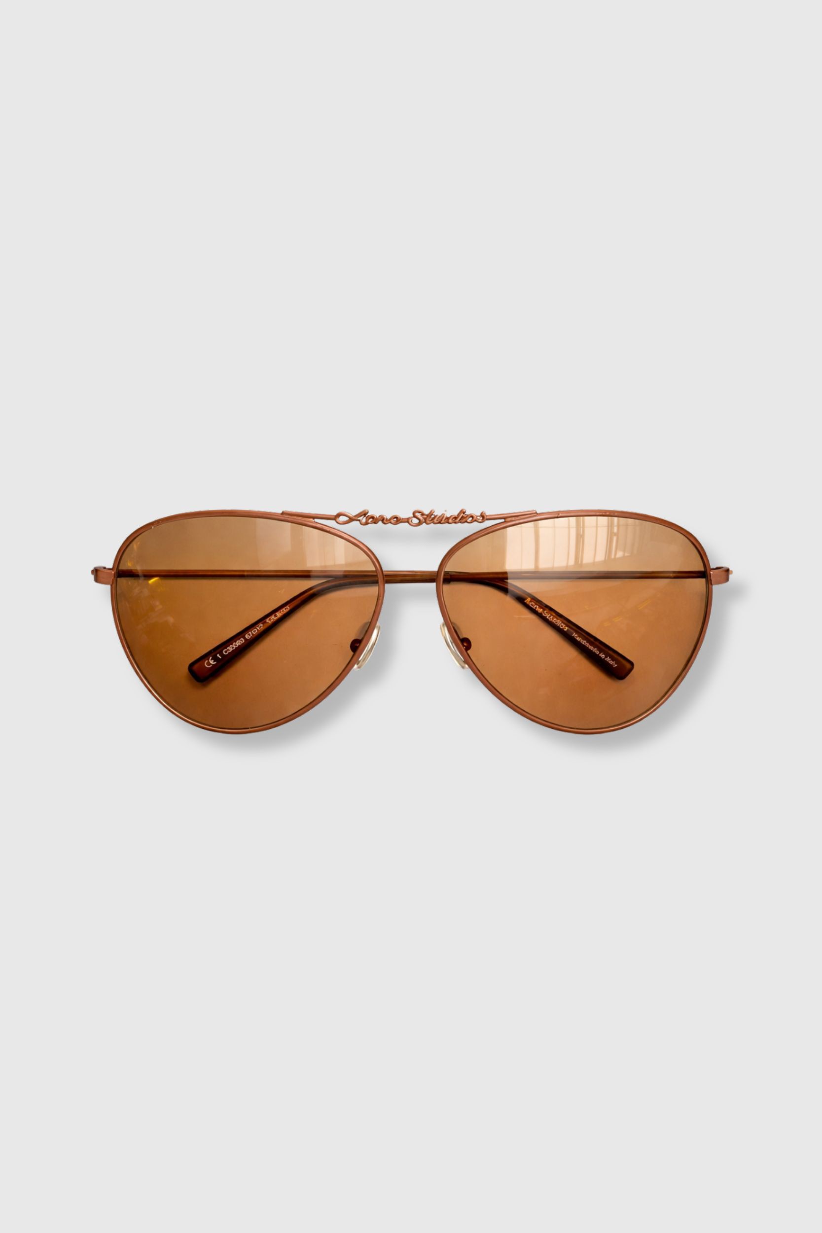With their iconic shape, these aviator sunglasses by Acne Studios reinterpret a classic with a contemporary and refined twist. The slim metal frame combined with warm amber-tinted lenses adds depth and character.