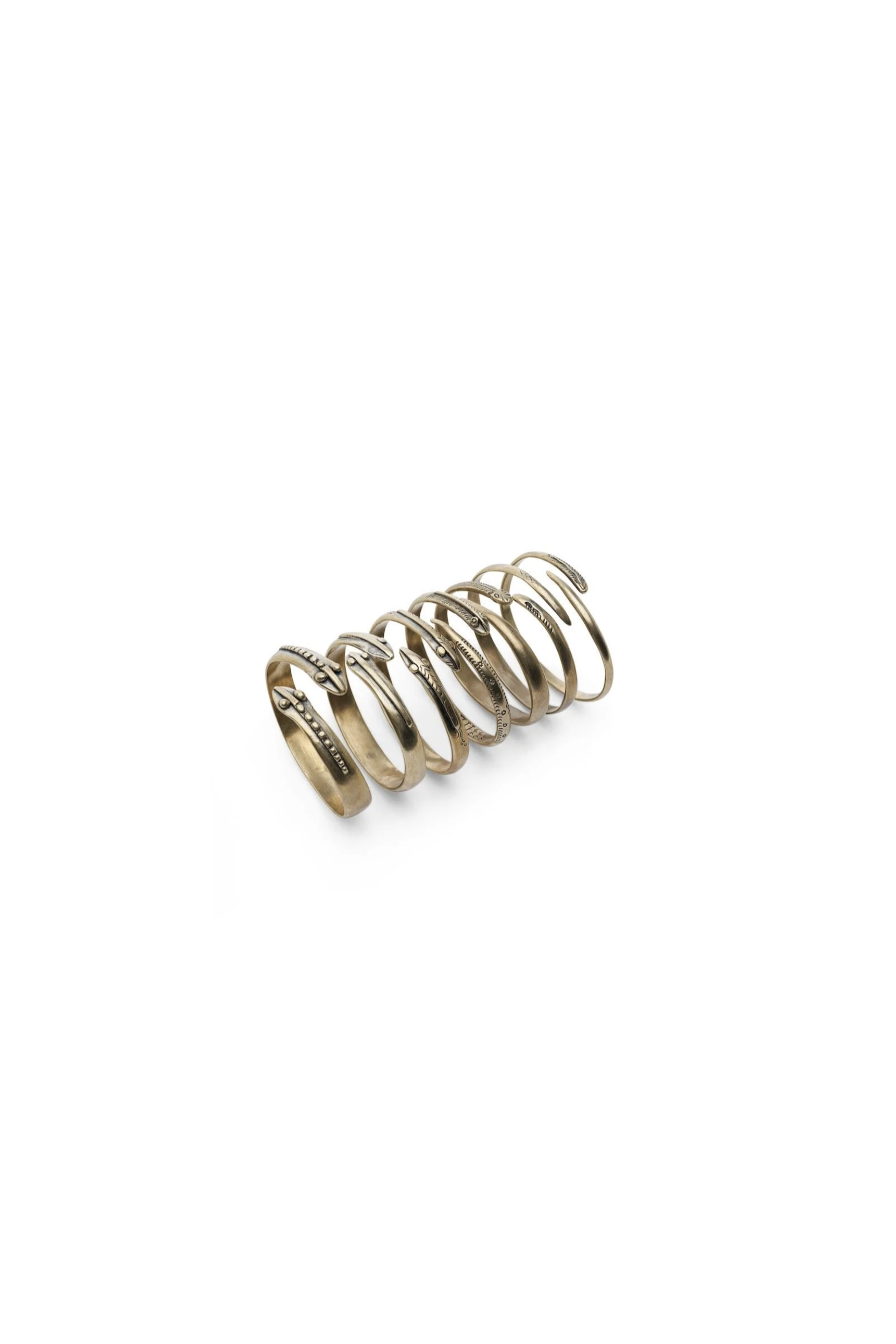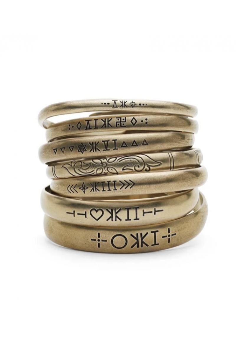 A refined set of seven brass bracelets from the Tuju collection, designed with elegance and versatility in mind. Each bracelet features a polished finish, playing with the metallic sheen and subtle nuances of brass. Wear them individually for a discreet accent or stacked for a bold, layered look—they deliver contemporary sophistication.