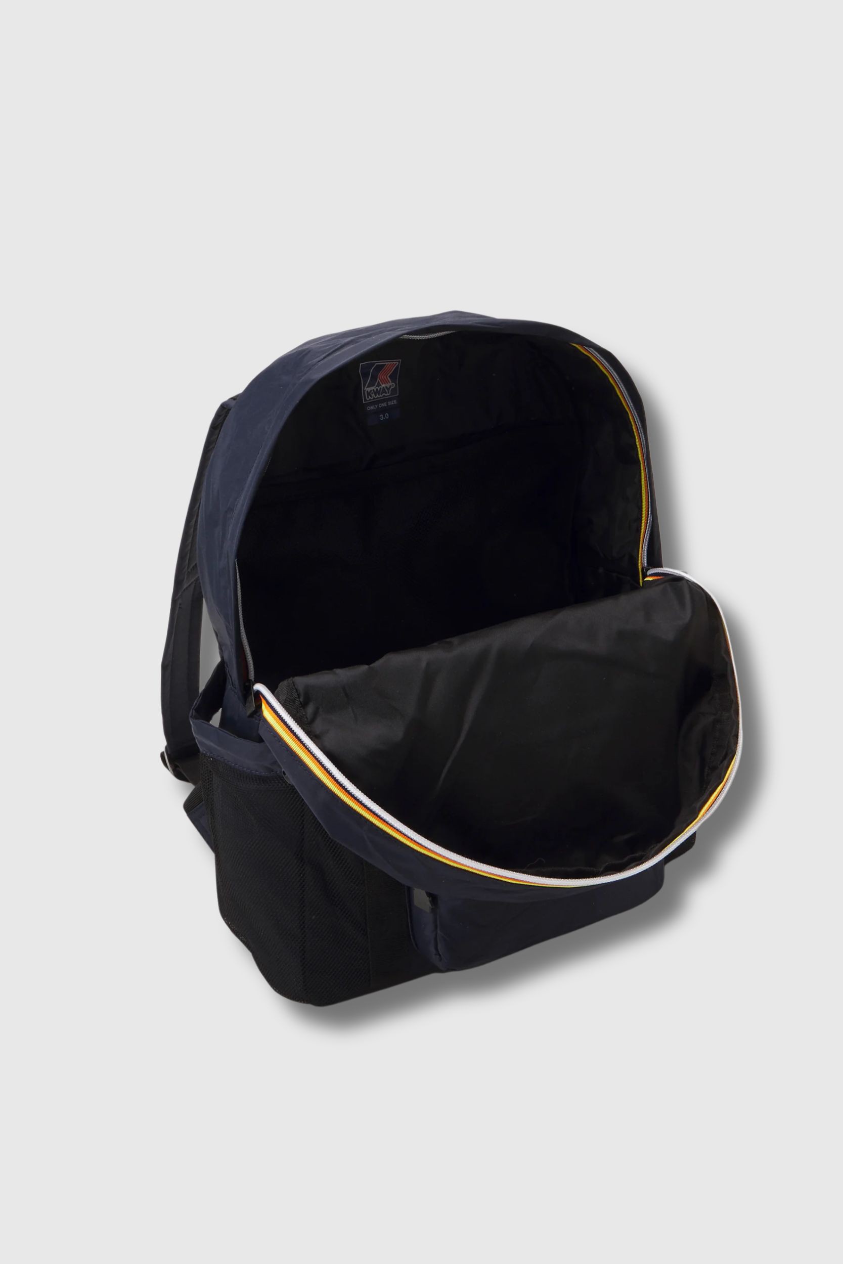 This Le Vrai Michel 3.0 navy backpack is by K-Way. Practical and compact, it features a spacious main compartment, a front zip pocket, and mesh side pockets. The two-way zip closure ensures easy access, while the adjustable shoulder straps provide comfortable everyday wear.