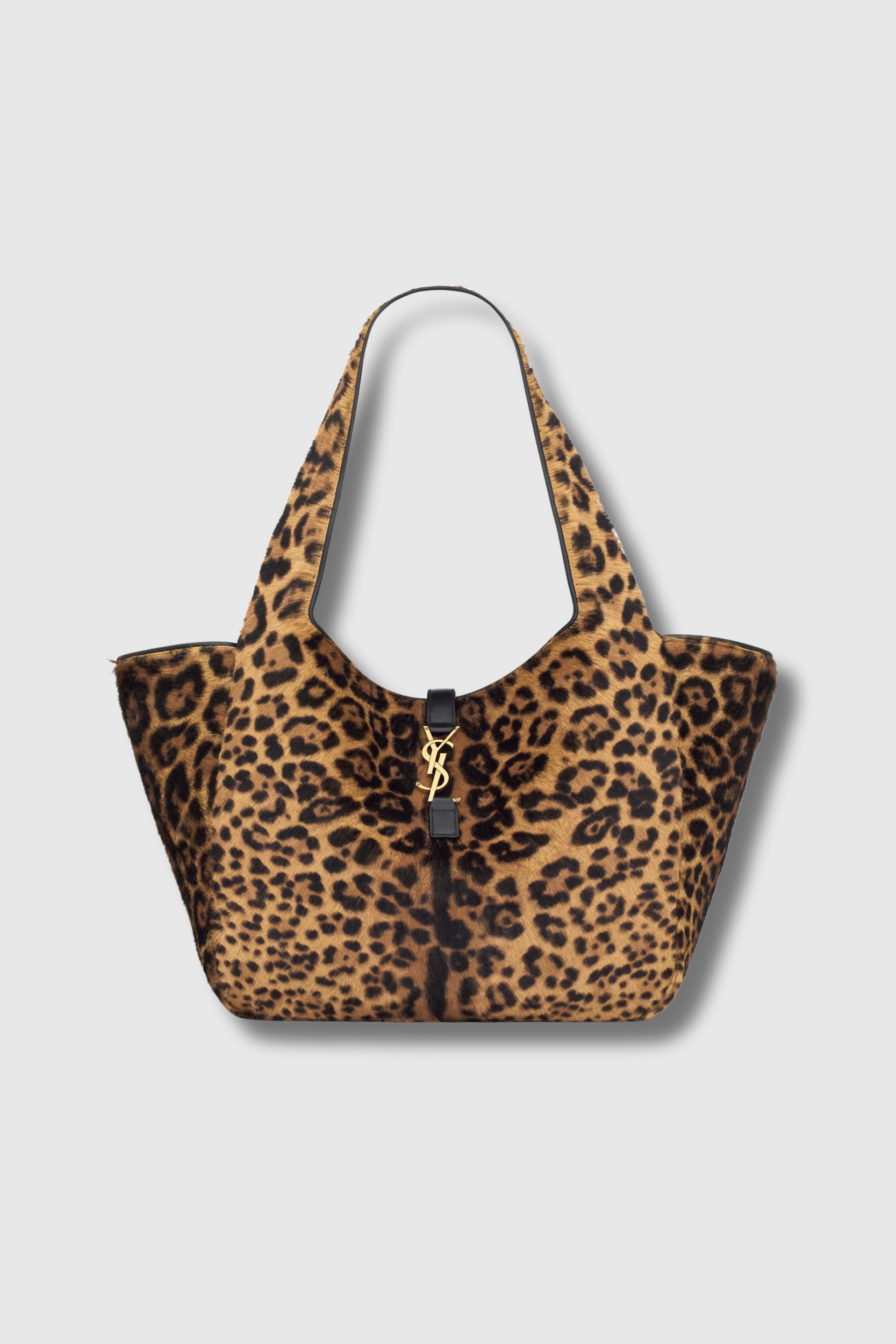 This soft tote in leather and leopard pony, lightweight and lined with suede for a refined touch, is signed Saint Laurent. It stands out with its leather tab adorned with the Cassandre emblem and a practical interior zip pocket. Spacious and elegant, its East/West format adapts to your needs thanks to side drawstrings that allow you to adjust the shape and create different silhouettes.