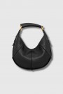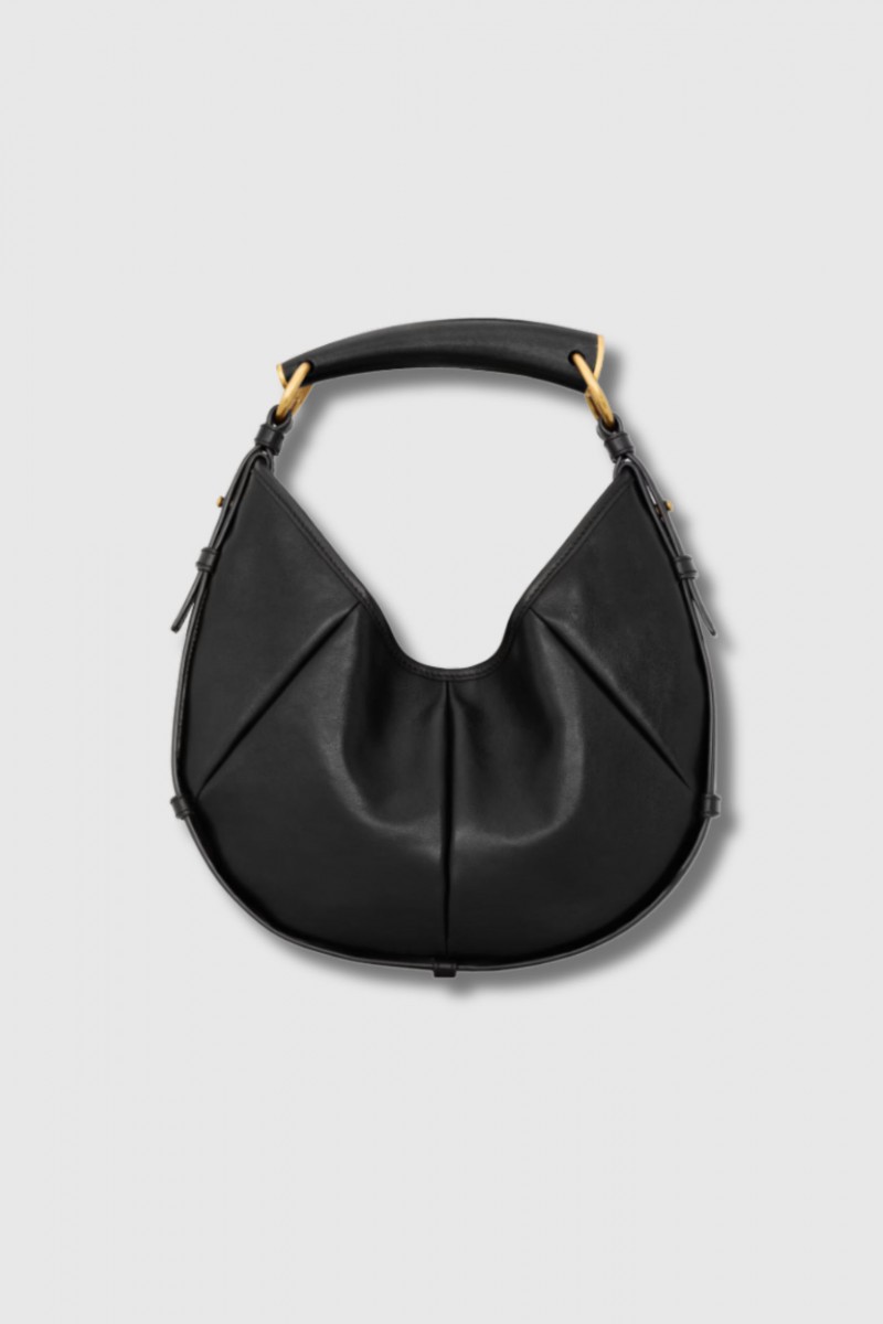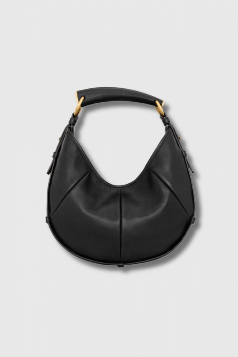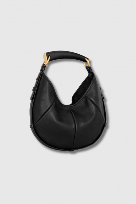 The Mombasa Medium bag by Saint Laurent embodies sculptural sophistication with a contemporary edge. Crafted from black leather, it stands out through its structured silhouette and iconic signature handle. The medium size offers generous space while maintaining a sleek, minimalist aesthetic. A statement accessory designed to elevate both everyday and evening looks.