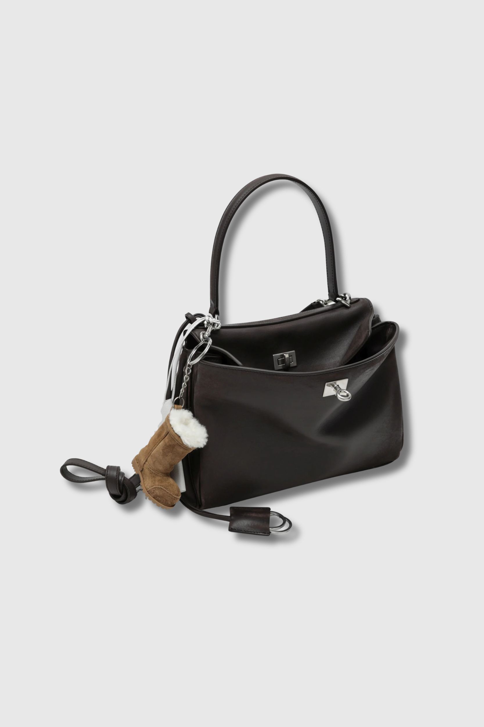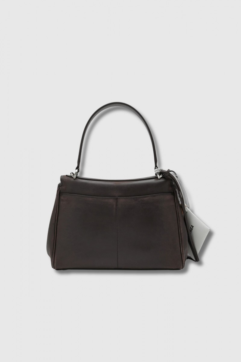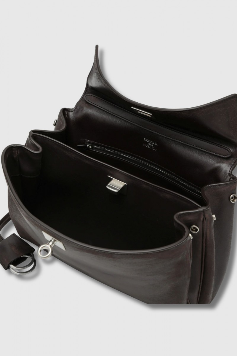 The Rodeo Small bag by Balenciaga embodies a new vision of the urban handbag, both supple and structured. Crafted from calfskin leather, it features a smooth texture with a subtly aged finish that adds character and depth.