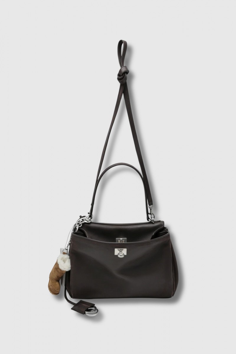 Its relaxed silhouette, inspired by hobo bags, is enhanced by precise lines and an elegant construction. The deep espresso shade brings a sophisticated and versatile touch, perfect for everyday styling.