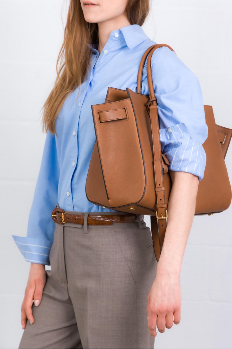 This slim Cassandre belt in brown crocodile leather is designed by Saint Laurent. It features the gold Cassandre logo and crocodile embossing.