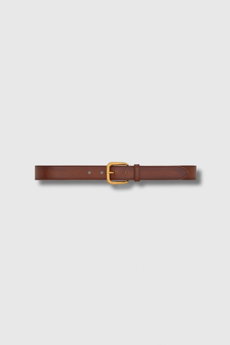 Cassandre belt in smooth brown leather with a distressed effect