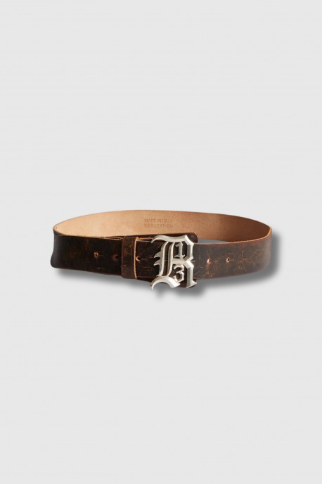 This brown logo belt is by R13. Crafted from vintage-style brown leather, it features a silver-tone metal buckle with the R13 logo, adding a distinctive and modern touch.