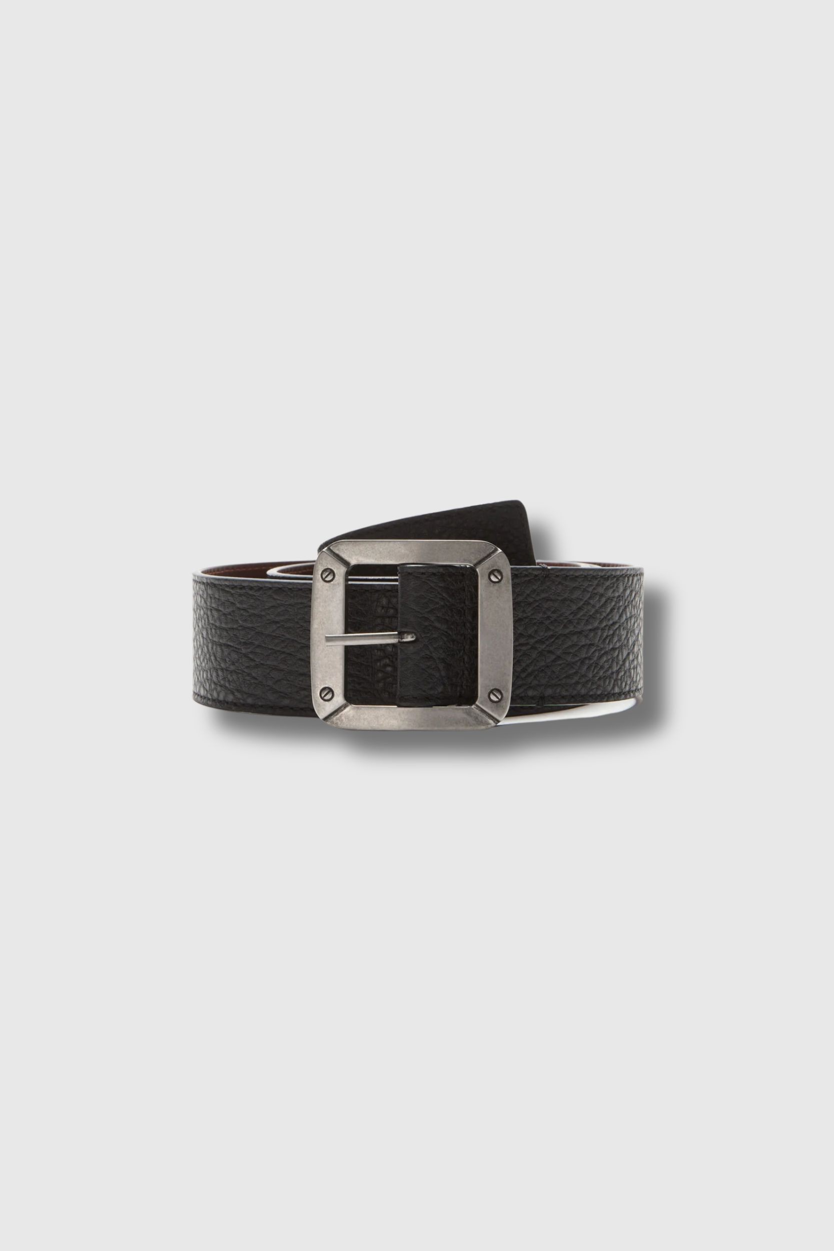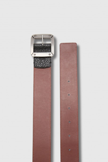 Reversible black grained leather belt