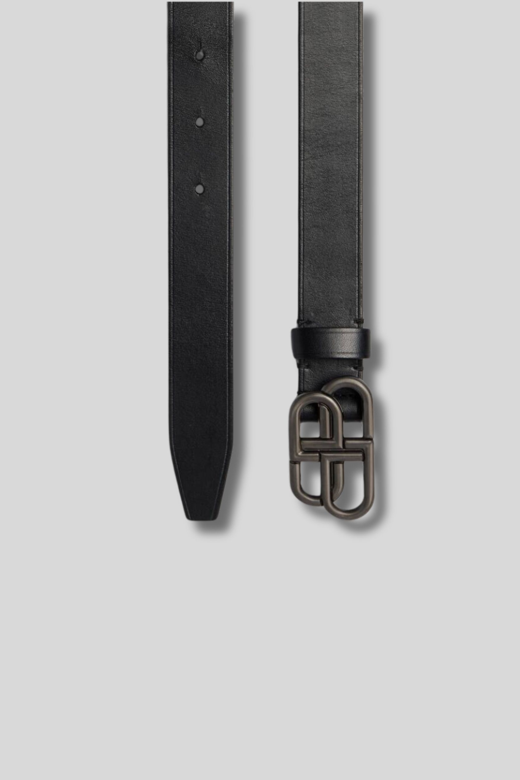 This black Thin BB belt in natural calf leather is designed by Balenciaga. It features the house's logo in matte black on the front. 5 notches at the waist.