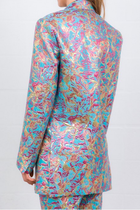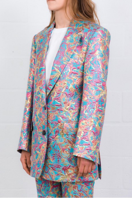This Basti multicolour floral jacquard blazer is by Dries Van Noten. Crafted from lamé floral jacquard, it features a structured straight fit with a double-breasted closure. A statement piece, it adds an artistic and sophisticated touch to any look.