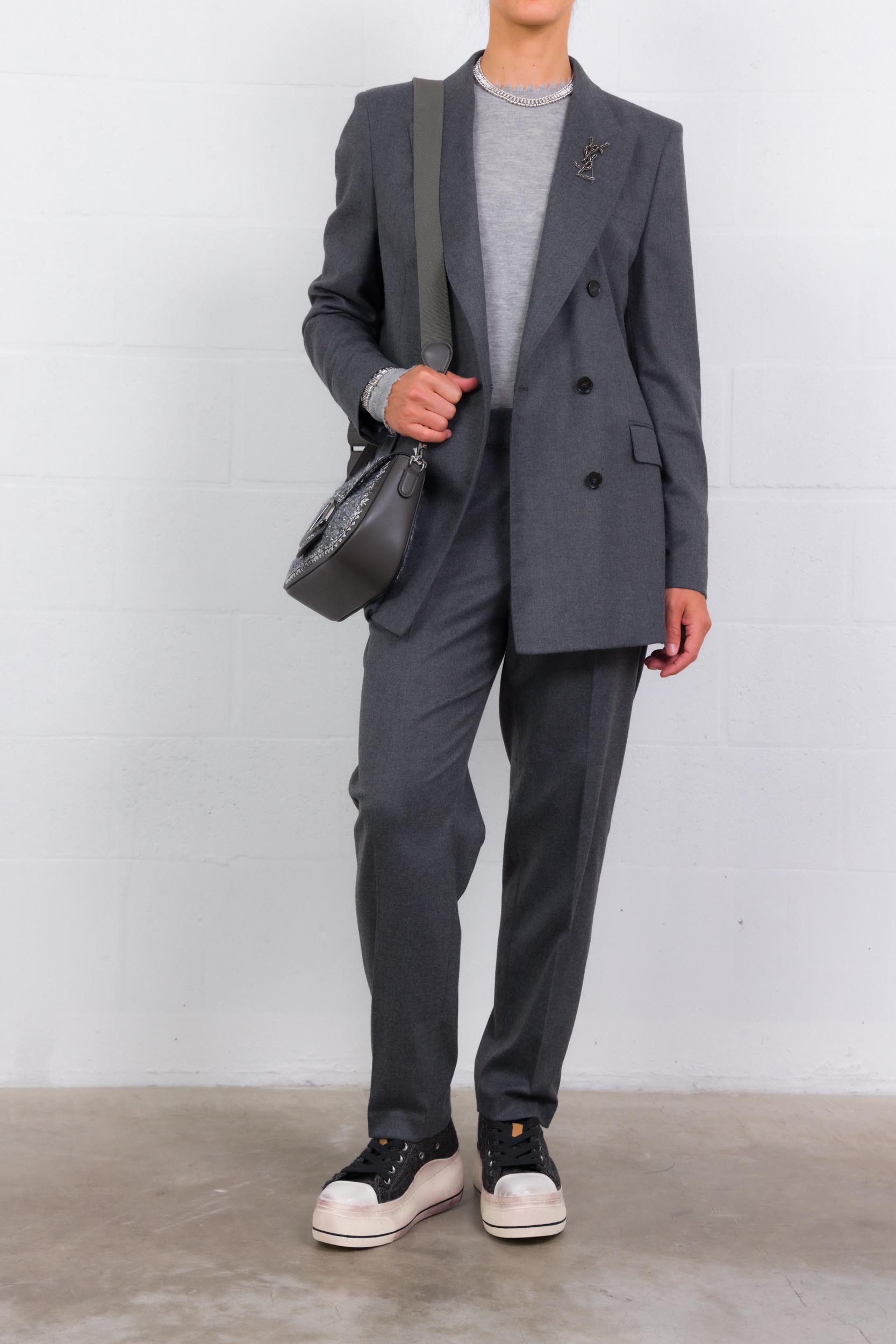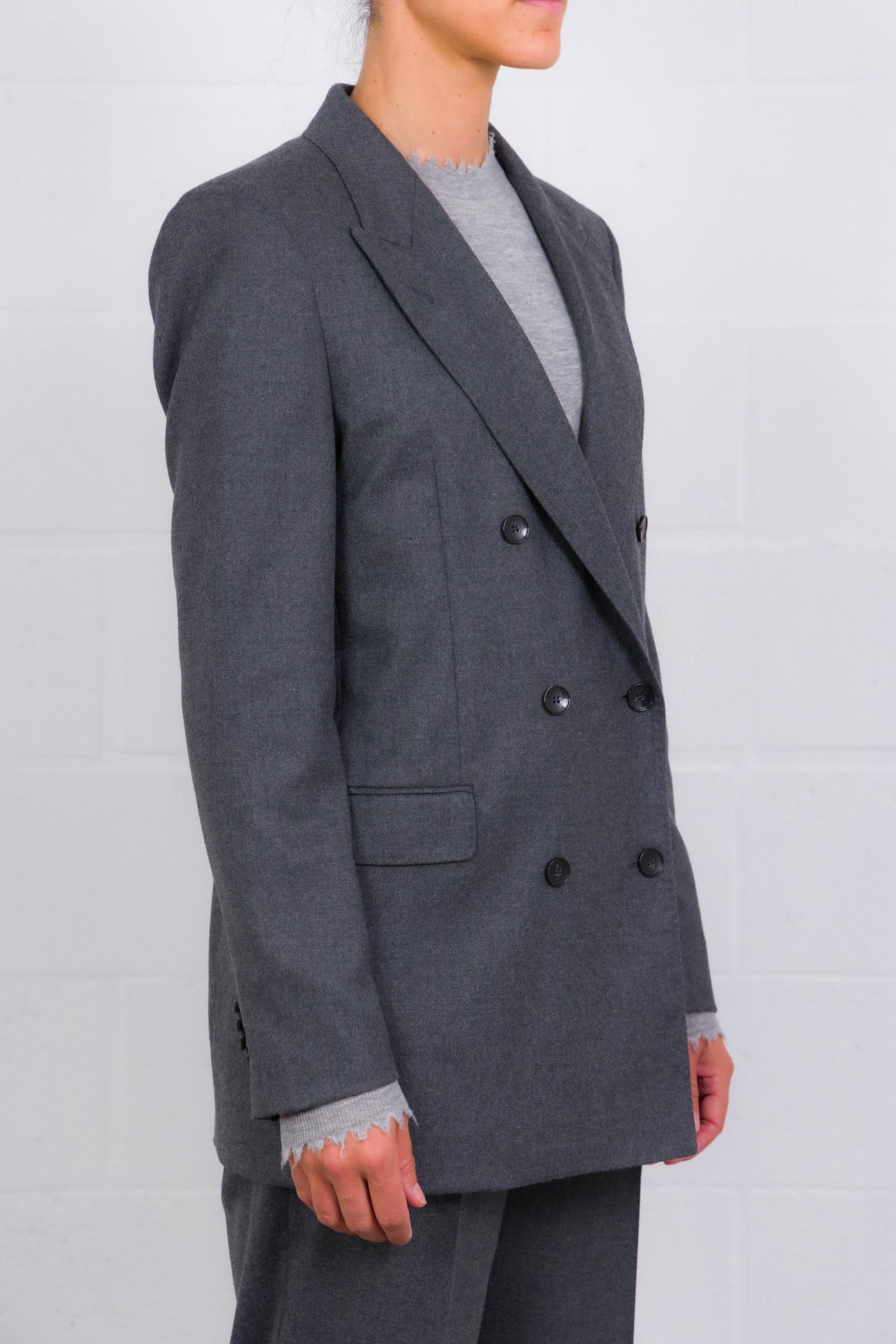 This dark grey blazer by Seventy stands out with its straight cut and double-breasted closure, offering a look that is both modern and timeless. It features two flap pockets and a patch pocket on the chest, combining functionality and refinement.