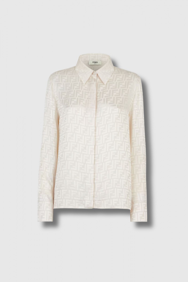 FF logo shirt in ecru silk