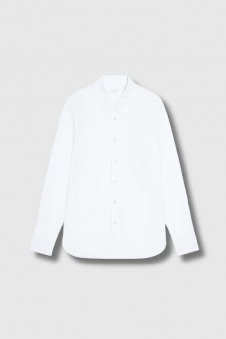 The Cheers white cotton shirt by Dries Van Noten embodies relaxed, timeless elegance. Crafted from white cotton, it features a loose fit for a fluid, modern silhouette. Its classic collar, front button closure, buttoned cuffs, and chest patch pockets reinterpret tailored shirt codes with understated sophistication.