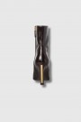 These Missina ankle boots are designed by Fendi. Crafted from shiny brown myxine leather, they stand out for their refined silhouette and iconic Arco line. The high heel, covered in tone-on-tone leather and embellished with a gold metal detail engraved with the logo, embodies the brand's signature elegance. An interior zipper closure and leather sole complete this timelessly sophisticated design.
