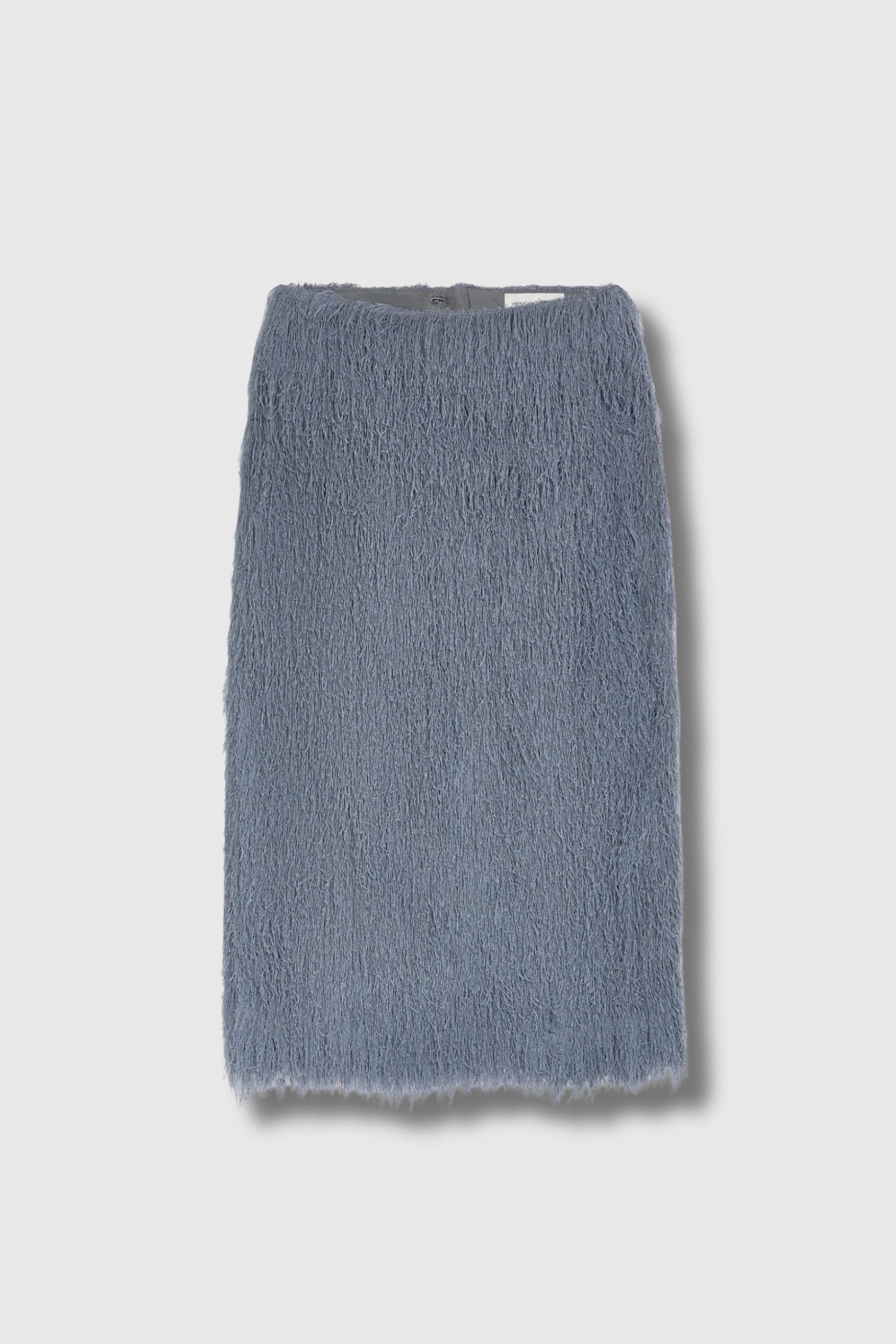 This grey fringed midi skirt by Dries Van Noten captivates with its intuitive silhouette. Its regular fit is enhanced by delicate fringes, cut from a lightweight fabric that catches the light with every step. The fluid yet structured drape, accentuated by a mid-rise waist, embodies a confidently contemporary style. A discreet back slit, fastened with a button, lends a refined finishing touch. A graceful, modern piece designed to elevate movement with subtle finesse and poise.