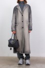 The oversized silhouette delivers a modern, effortless look, while raw-edge details and flap pockets add a contemporary touch. Finished with three black buttons, this coat strikes the perfect balance between minimalist design, comfort, and understated sophistication.