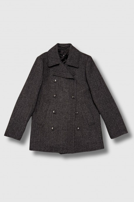 • Careful details: double-breasted metallic buttons, wide lapels, and piped pockets for a sophisticated touch.