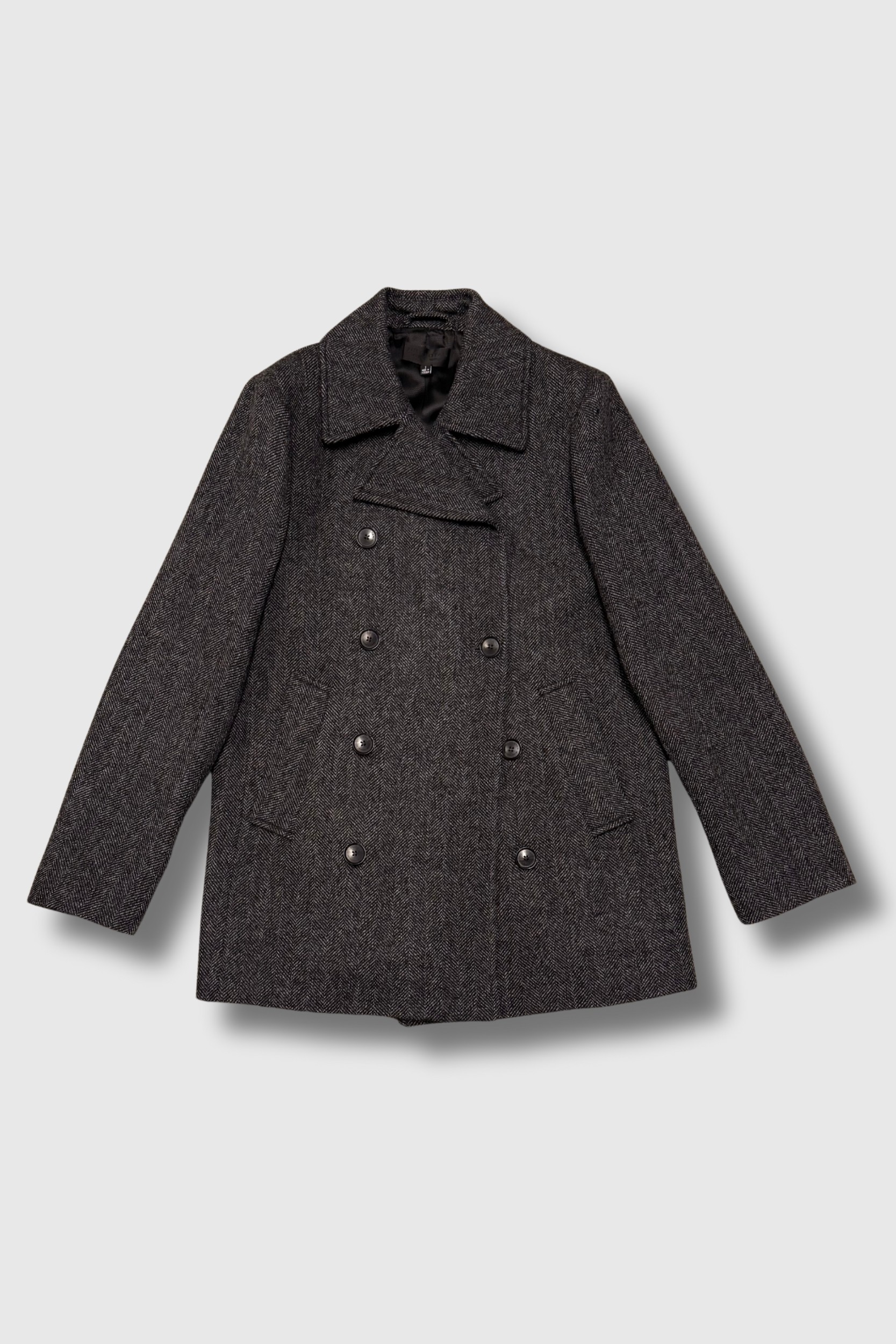 Timeless elegance and contemporary style come together in the Atlas peacoat by Nili Lotan. Crafted from gray wool tweed, this design offers a refined take on the classic peacoat with its structured cut and impeccable drape.