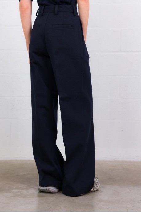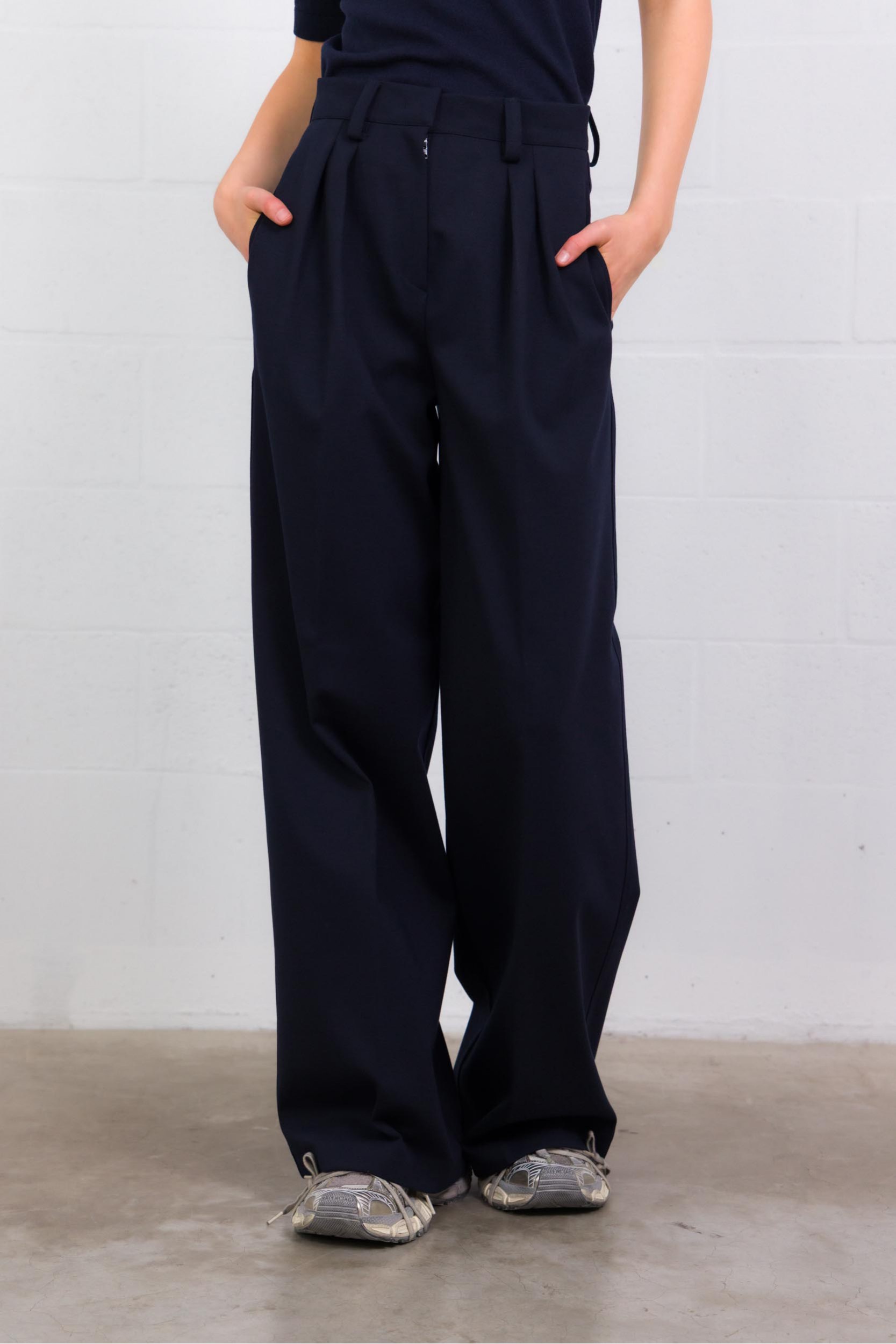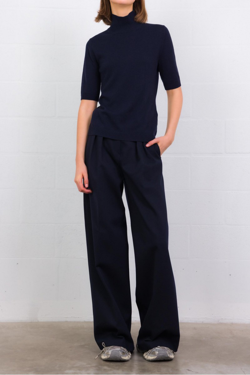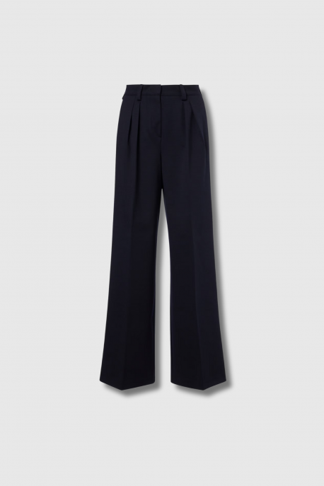 The “Molo” trousers by Max Mara blend luxury and wearability in a high-quality mix for a refined drape and fluid fit. Featuring a high waist, pressed pleats at the front, belt loops, a zip-fly with hook-and-button closure, and side slit pockets with back welt pockets, they premiere a smart wide-leg silhouette. The “Blue Navy” shade adds depth and versatility to any sophisticated wardrobe.