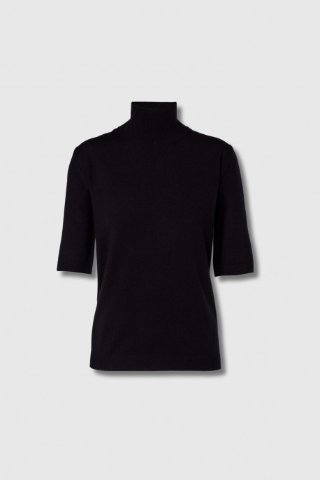 The Cantone top by Max Mara embodies Italian minimalist sophistication. Crafted from pure wool, it features an elegant turtleneck, finely ribbed cuffs and hem, and a fitted cut that gently contours the silhouette down to the hip. Its stretchy knit provides comfort and flexibility, while the deep black lends an enduringly sophisticated look. Ideal for creating a refined outfit — paired with tailored trousers, leather skirt or a structured blazer — this top stands out as a must-have piece for a luxury, modern and polished wardrobe.