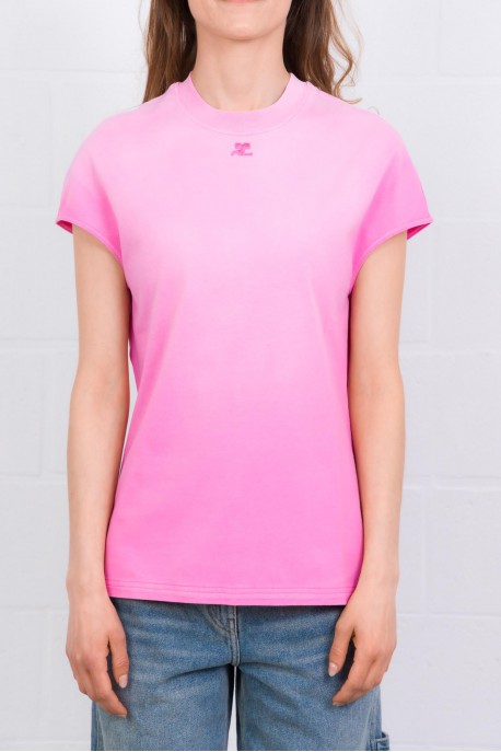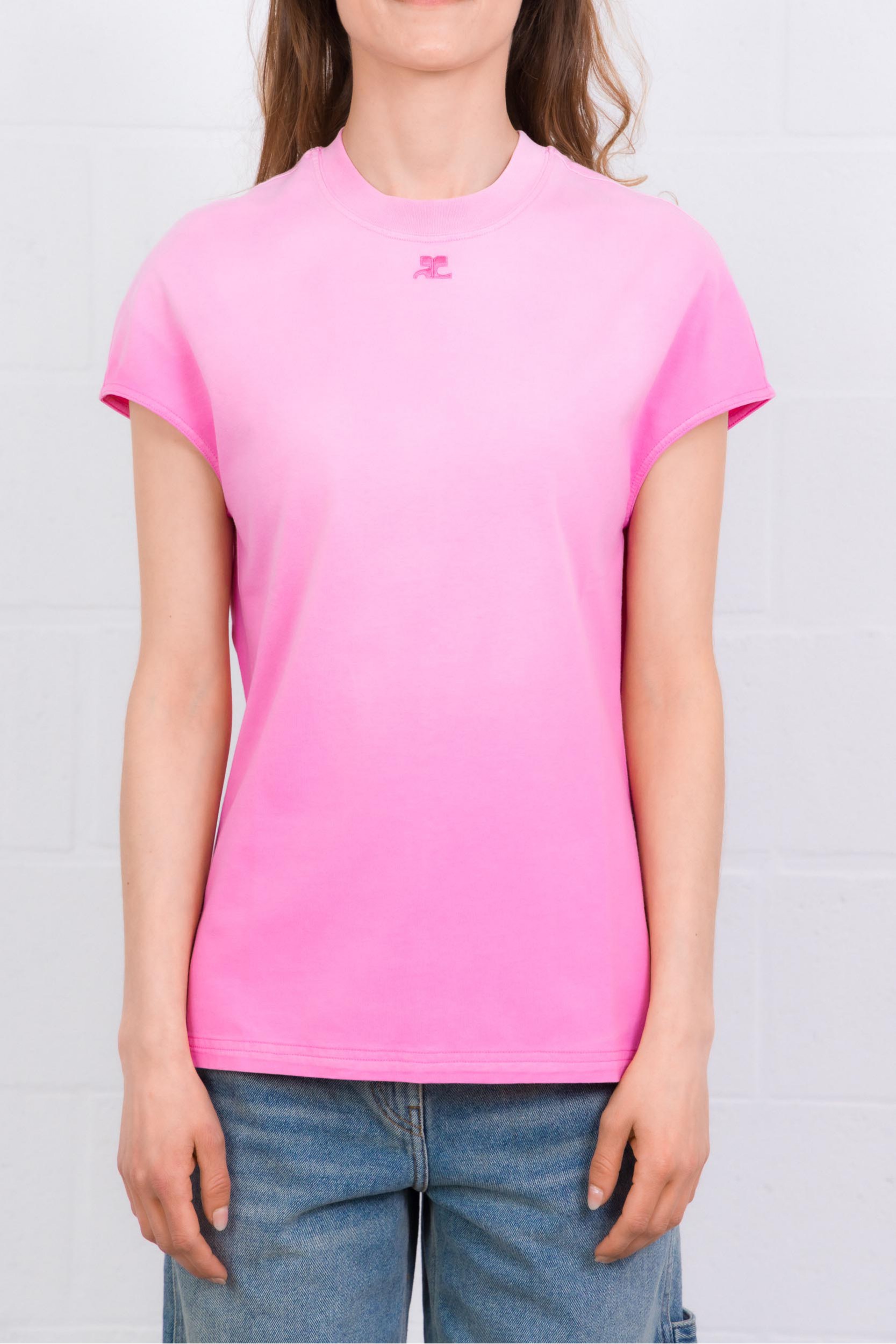 The Solarise Oversized T‑Shirt Courrèges in pink features a modern oversized cut and a unique solarized effect, reflecting Courrèges’ avant-garde style. Made from soft, comfortable cotton, this lightweight T‑shirt ensures a casual chic look while remaining easy to wear. The AC embroidered logo at the neckline adds a subtle touch of elegance, making this oversized tee a contemporary and refined wardrobe essential.