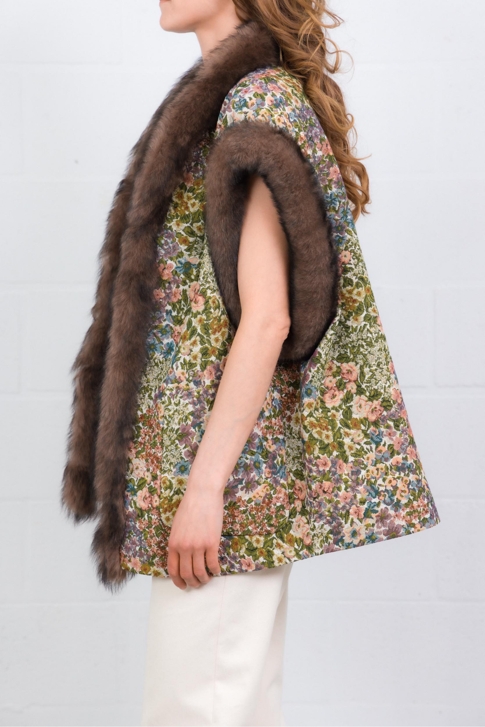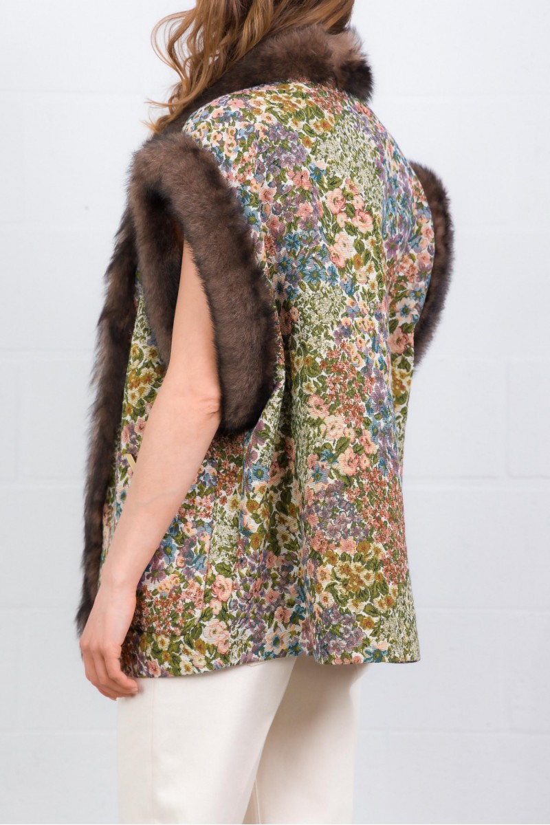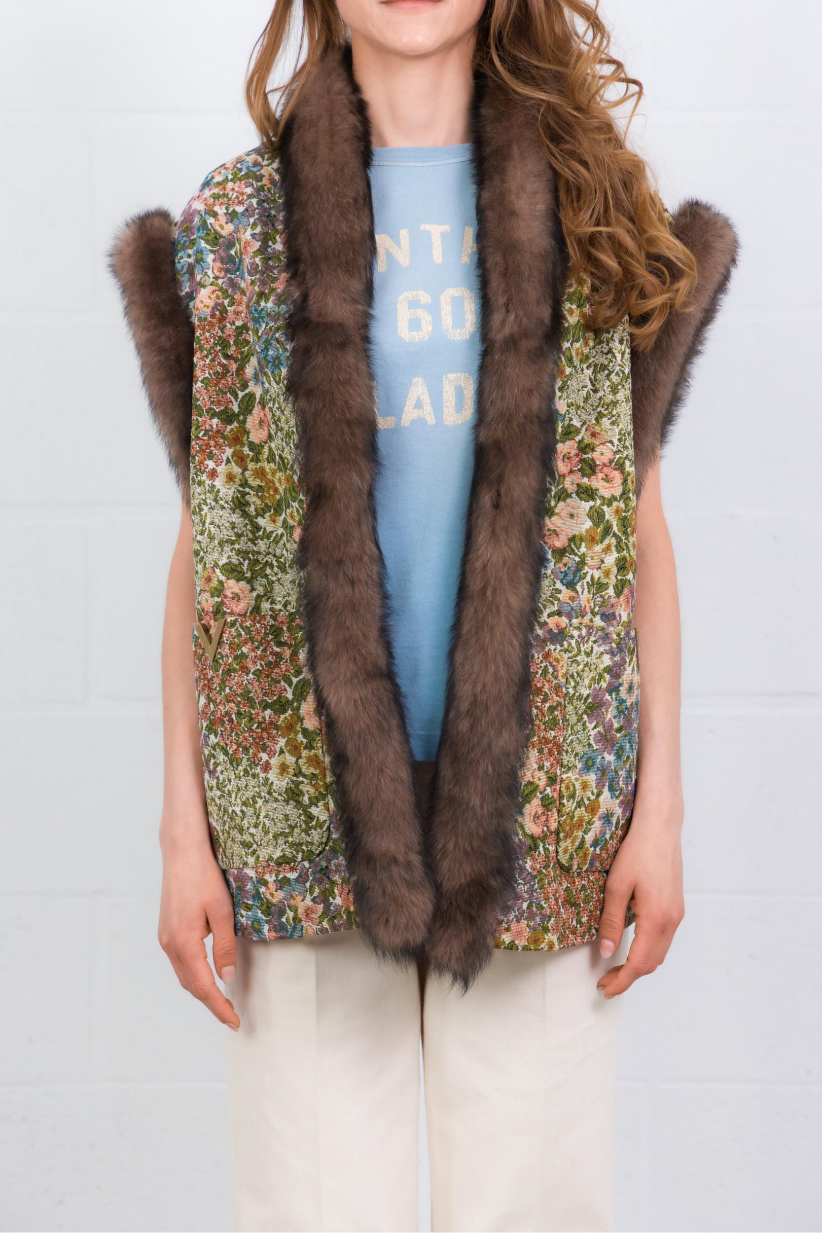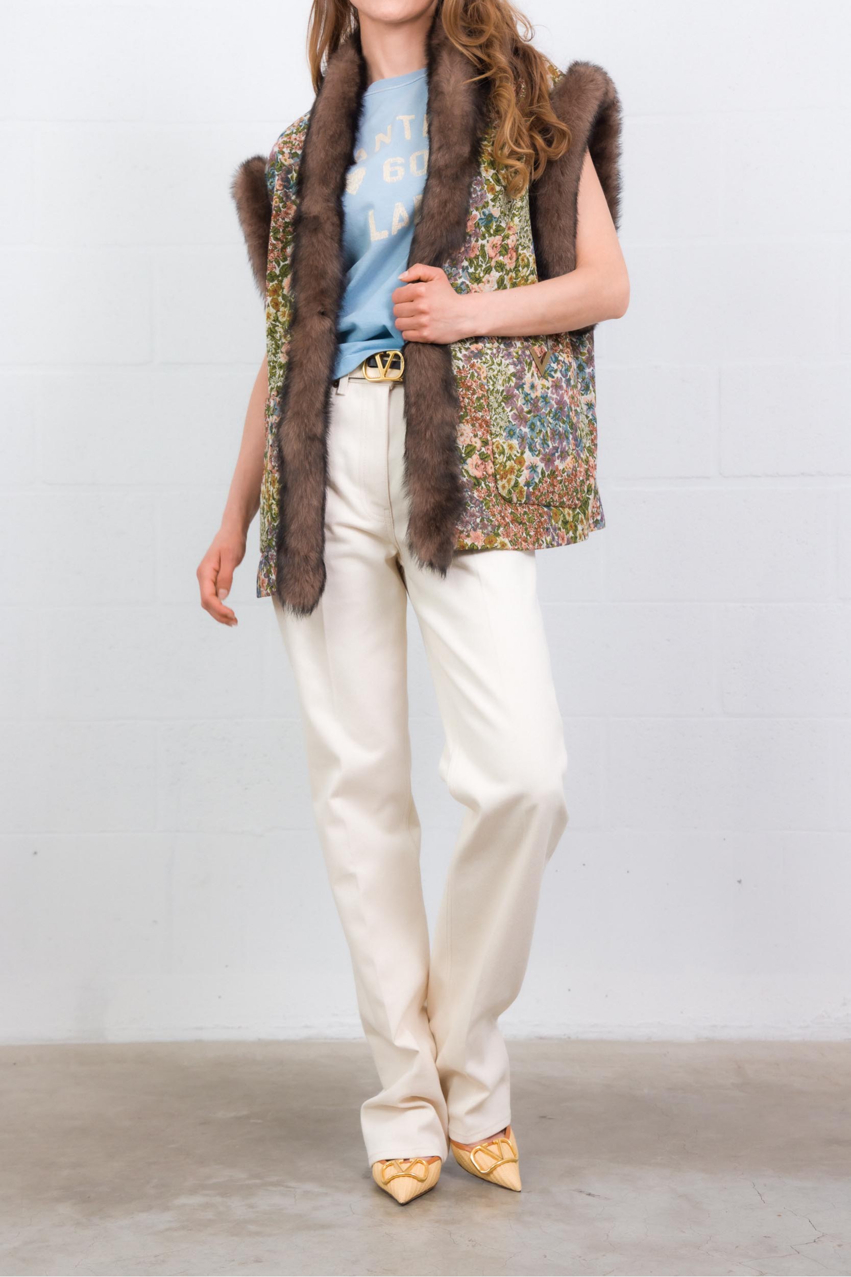 Valentino's Fiorellini winter-inspired Gobelin vest combines craftsmanship with contemporary aesthetics. Crafted from a rich fabric with a pattern inspired by the art of tapestry, it features a structured cut, a classic collar, and a refined finish that highlights its couture spirit. Its delicate floral motifs in harmonious tones add an artistic touch, ideal for enhancing an elegant and sophisticated outfit. A distinctive piece from the Valentino wardrobe, designed to enrich a modern and refined look.