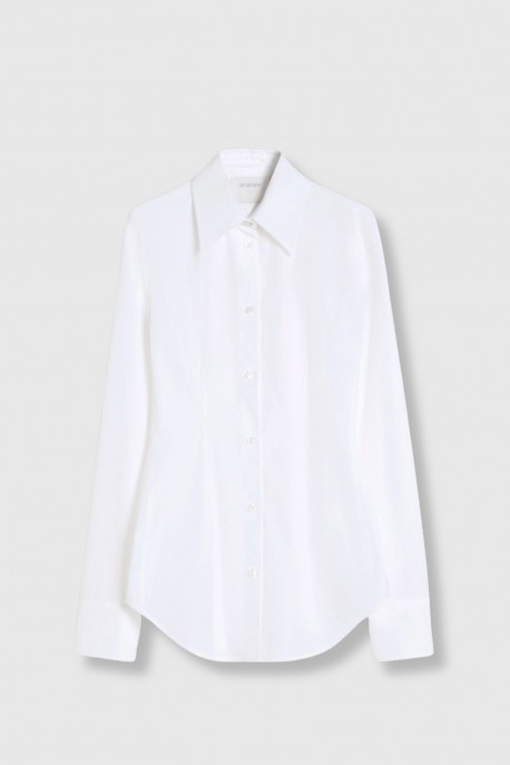 This shirt by Max Mara embodies the house’s understated elegance. Crafted from 100% cotton, it offers a soft and breathable feel with a clean, structured drape. Its subtly tailored cut, classic collar and button fastening create a timeless and refined silhouette. A versatile wardrobe essential, ideal for both sharp tailoring and effortless styling.