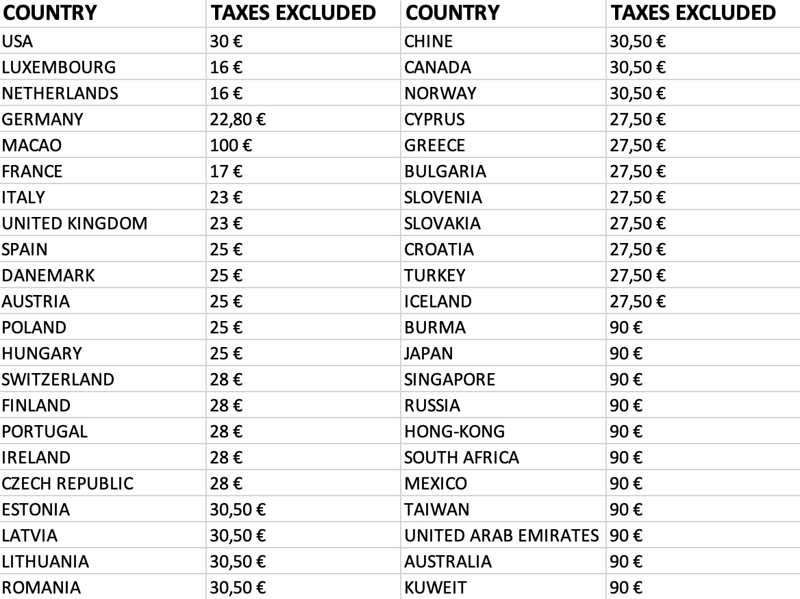 Delivery costs of €11,07 including tax are payable by the Customer for any order with a total amount of less than €170 including tax. Delivery is free for purchases equal to or greater than €170 including tax. Express delivery costs (1-3 business days).