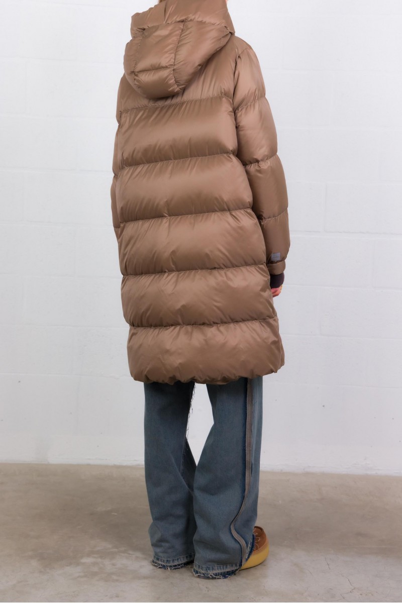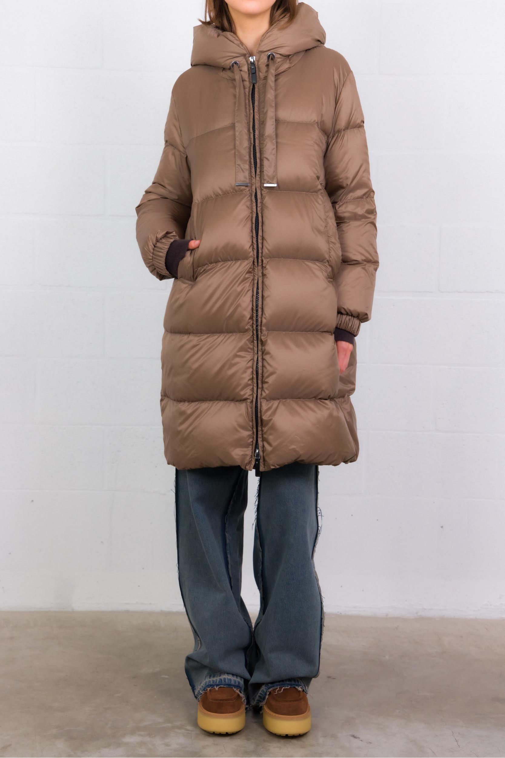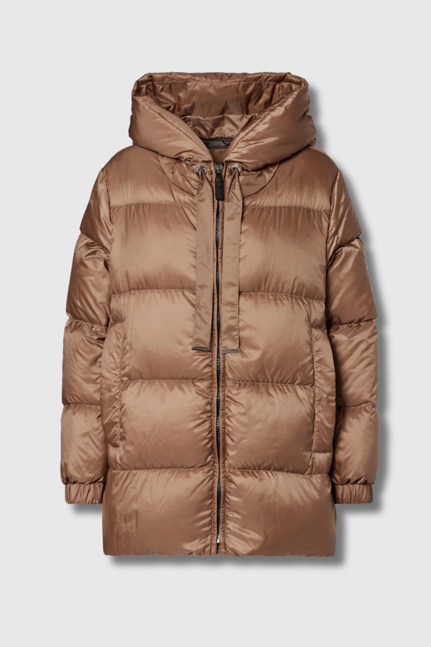 This long beige puffer jacket is designed by Max Mara. Waterproof and elegant, it embodies the Italian craftsmanship of the brand. The Seia model features an adjustable drawstring hood, a front zip fastening, mesh pockets and elasticated cuffs for optimal comfort.