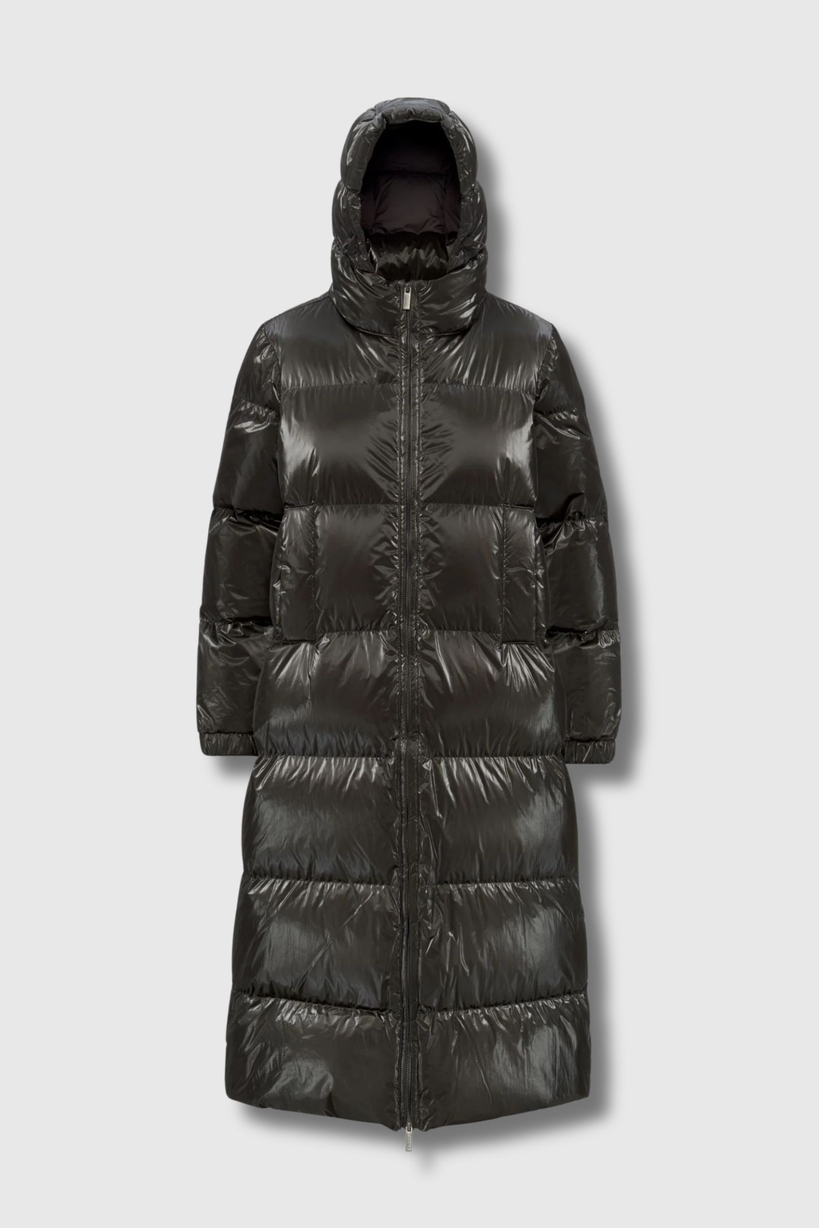 The Ruenne Thermo Pearly long down jacket by K-Way combines elegance and technical features. Made from quilted fabric with a pearl finish, it appeals with its sporty and refined look. Filled with natural Molina down, it provides optimal warmth while remaining lightweight and comfortable. Its wraparound hood, elasticated cuffs and full-length zip fastening with discreet finishes offer maximum protection against the cold. Practical and functional, it has two press stud pockets and is enhanced with the iconic K-Way detail on the cuffs.