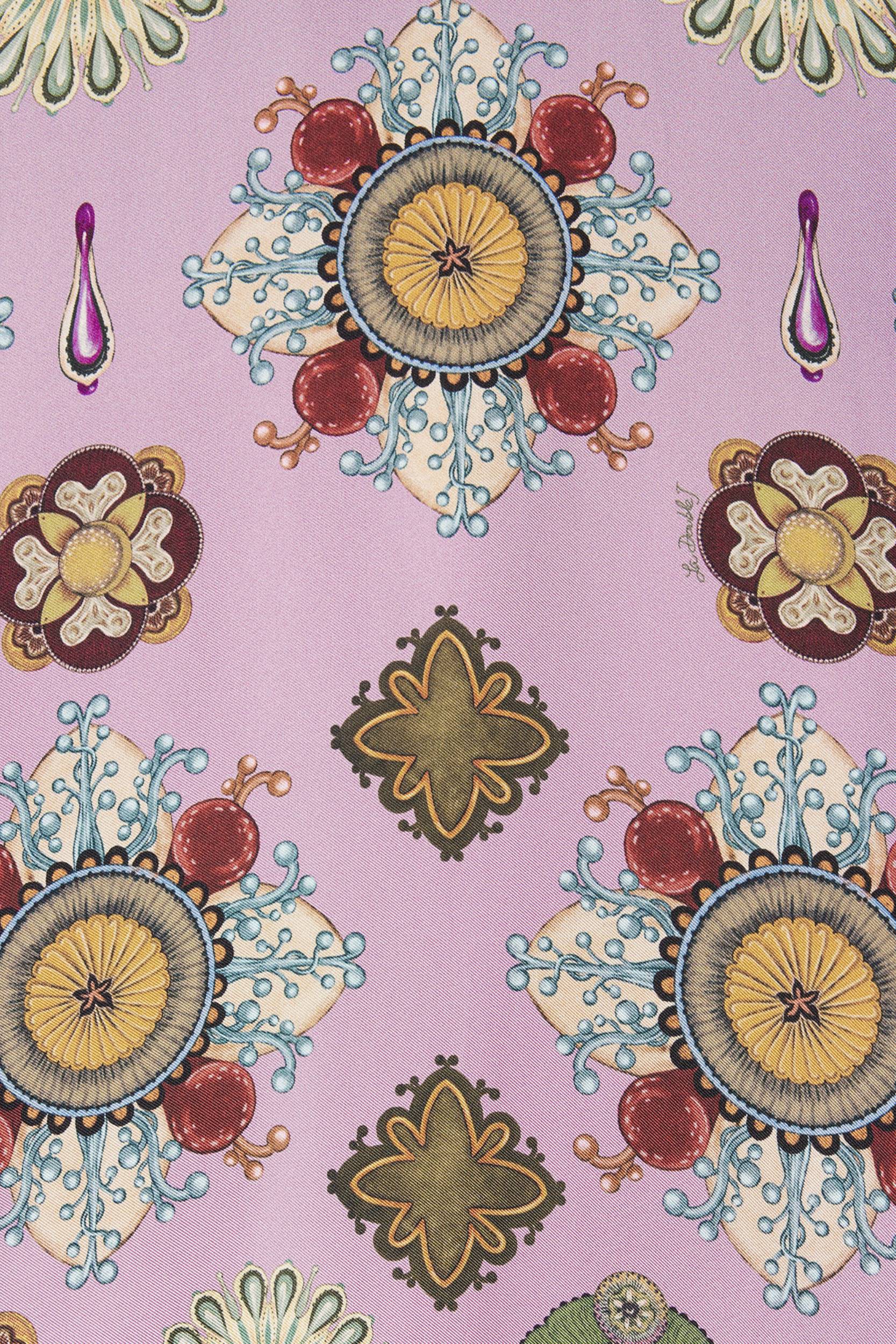 This pink silk-twill dress is designed by La Double J. It embodies a subtle balance of elegance and ease. Its fluid drape is elevated by ostrich feather details, adding a sophisticated and festive touch.