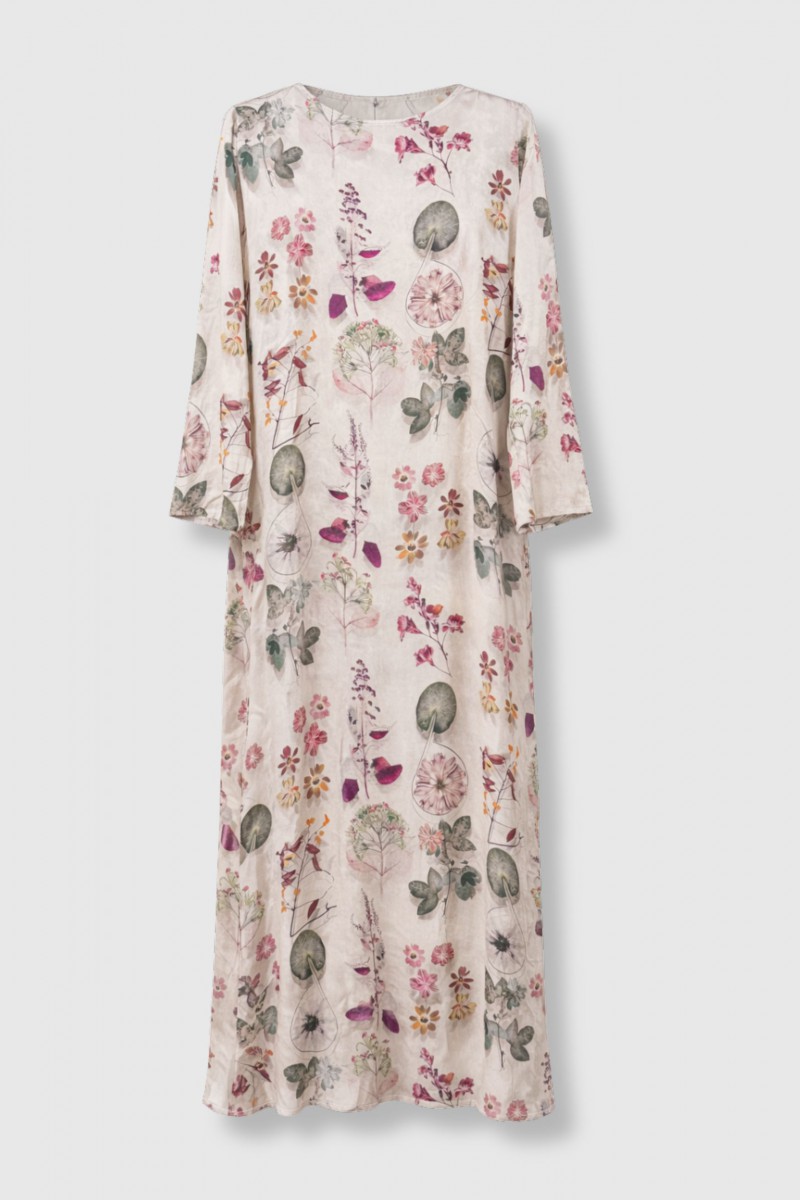 This pale pink silk print dress by Avant Toi embodies fluid, feminine elegance. Its delicate floral print adds lightness and romance, while the round neckline and long sleeves emphasise the refined simplicity of the design. Its long, loose fit offers comfort and movement, creating an airy, elegant drape. A versatile piece, ideal for sophisticated or casual looks with a touch of softness.