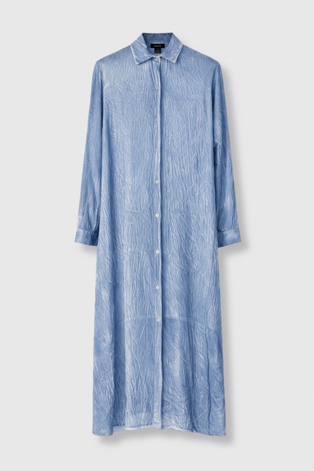 Denim blue silk shirt dress