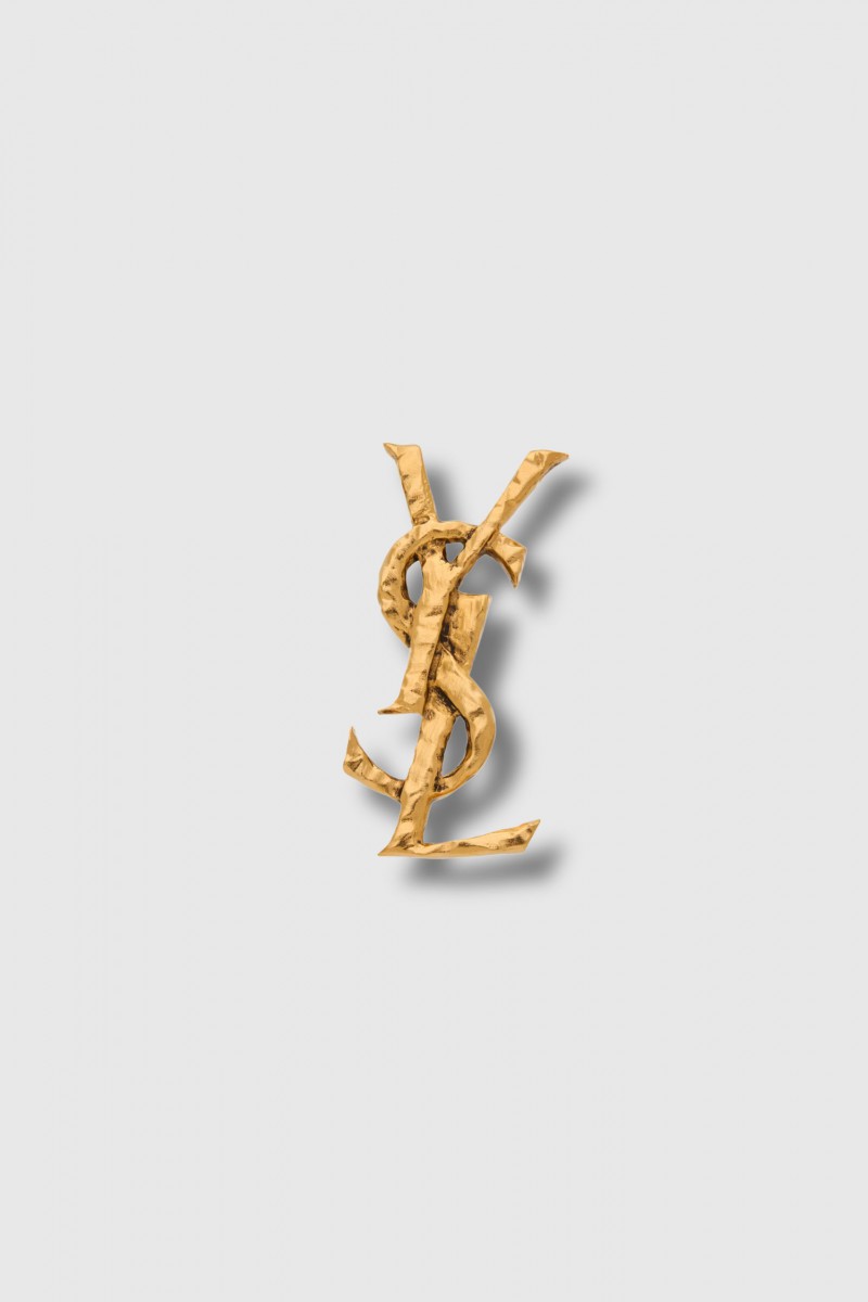 This Cassandre earring in gold-plated metal by Saint Laurent embodies the iconic elegance of the House. Crafted with a hammered finish, it features the famous Cassandre monogram, a timeless symbol of Saint Laurent style. With a clip fastening, it is comfortable to wear while asserting its jewellery character. The Saint Laurent engraving completes this sophisticated piece, designed to be worn alone for a resolutely chic and assertive look.