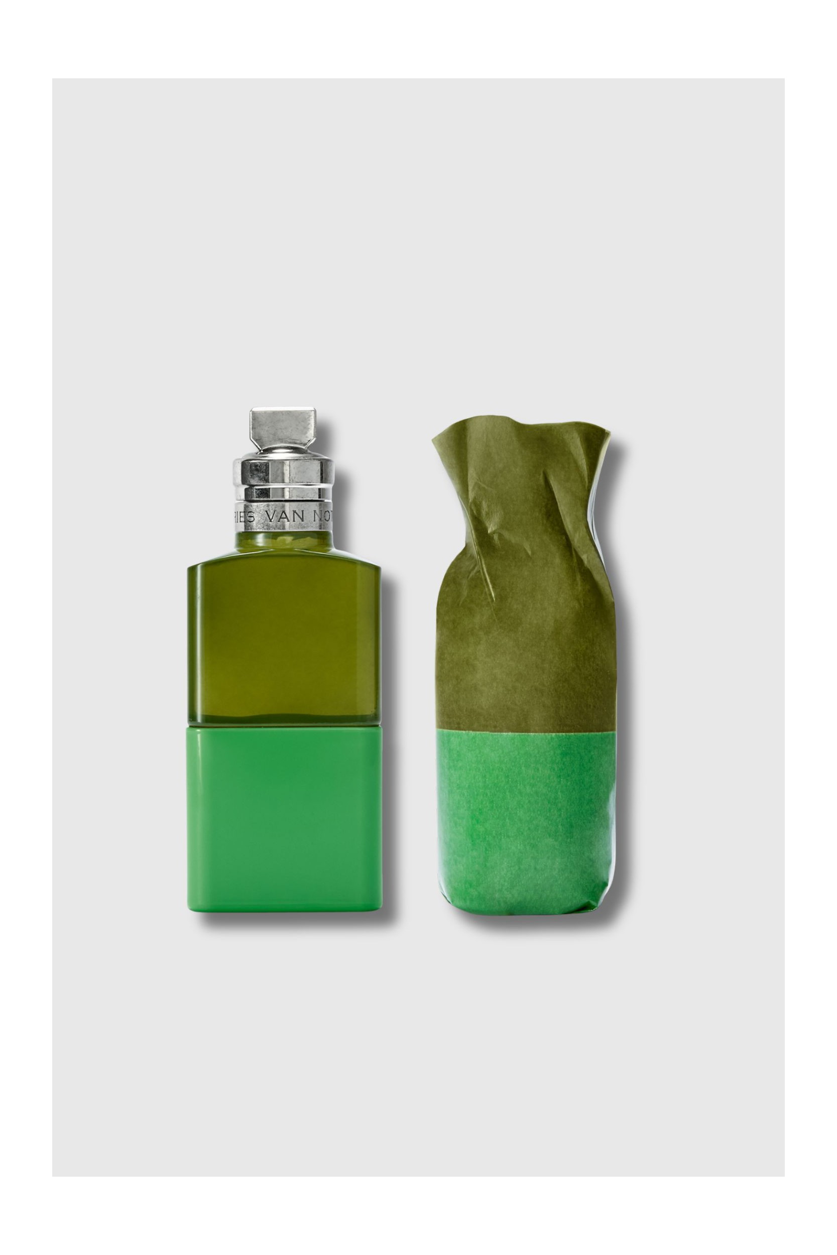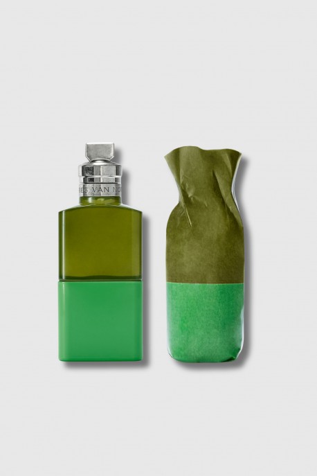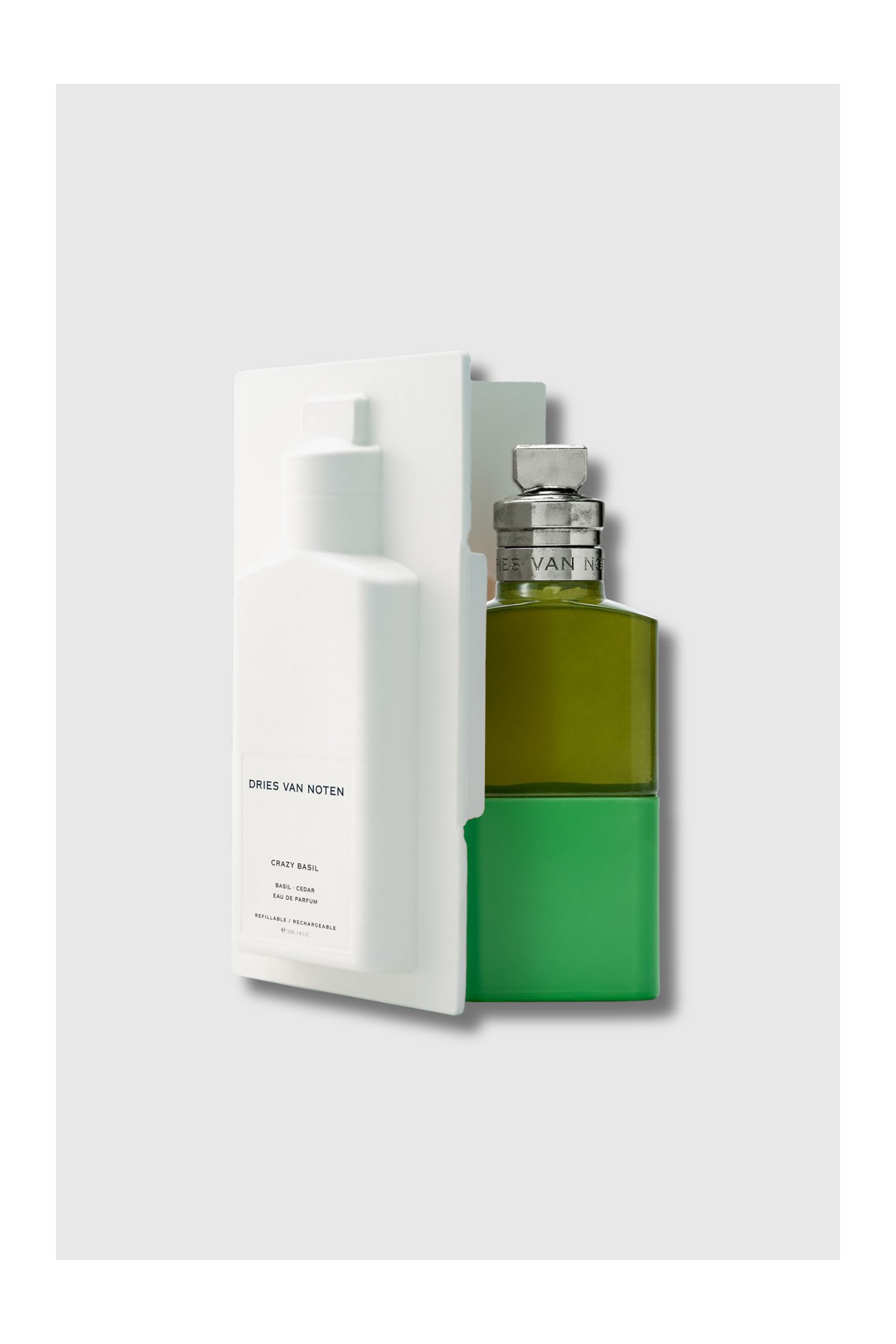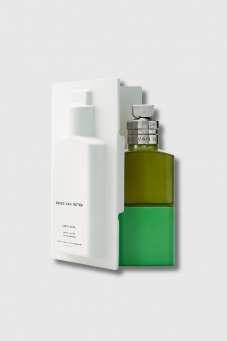 Crazy Basil, the Eau de Parfum by Dries Van Noten, reveals an intense green freshness where basil reigns supreme. Its vibrant and aromatic absolute envelops a warm heart of cedarwood, while amber and resinous nuances evoke a sun-kissed herb garden. Notes of bergamot, mandarin, geranium, and rosemary blend into a woody base of musk and hinoki for a modern and captivating olfactory signature. The bottle, faithful to the master of color, plays on a minimalist and sophisticated duo of greens.