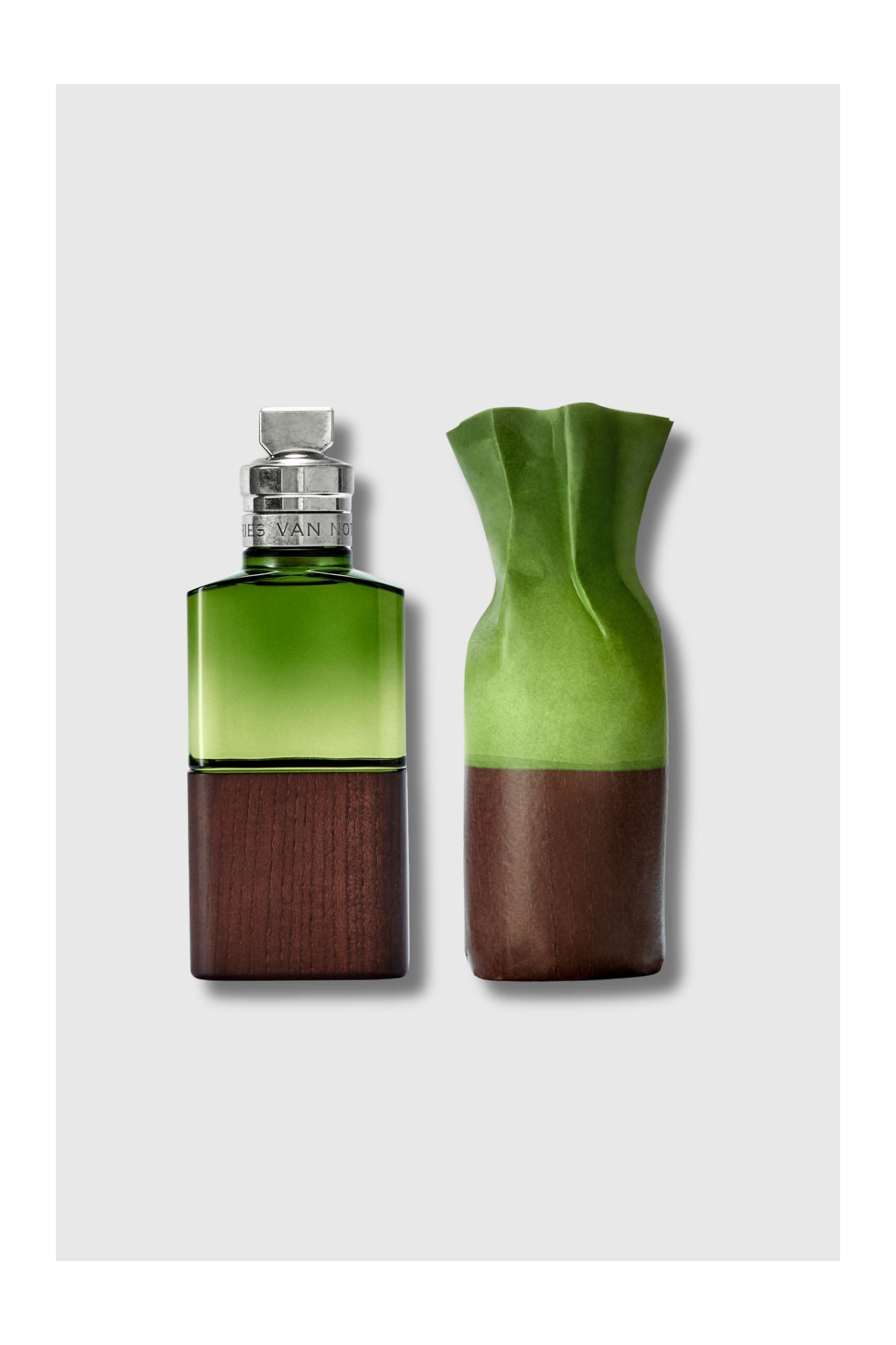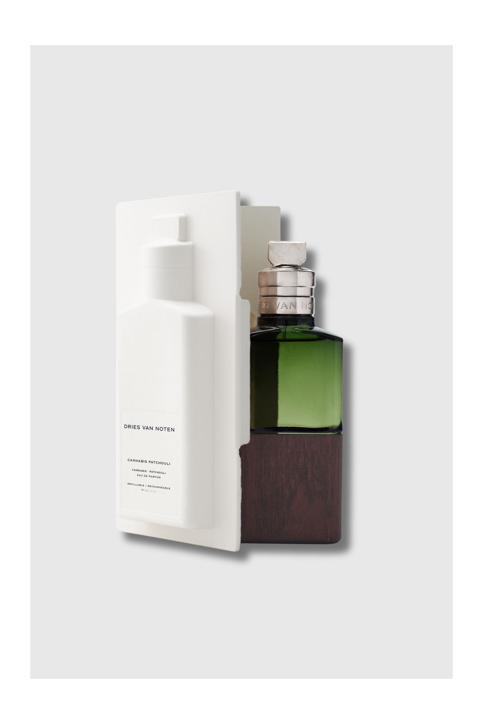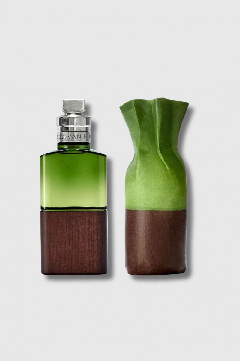 Cannabis Patchouli, the Eau de Parfum by Dries Van Noten, reveals a wild and delicate sensuality. Bergamot and cedar leaves open with a lively freshness, soon contrasted by a heart where sage incense and patchouli brush against each other in a play of light and shadow. The trail, anchored in vetiver and enveloping musk, reveals a woody and magnetic depth. Composed of 91% natural ingredients, the fragrance comes in a sculptural bottle combining forest green glass and PEFC®-certified wood, unique and handcrafted.