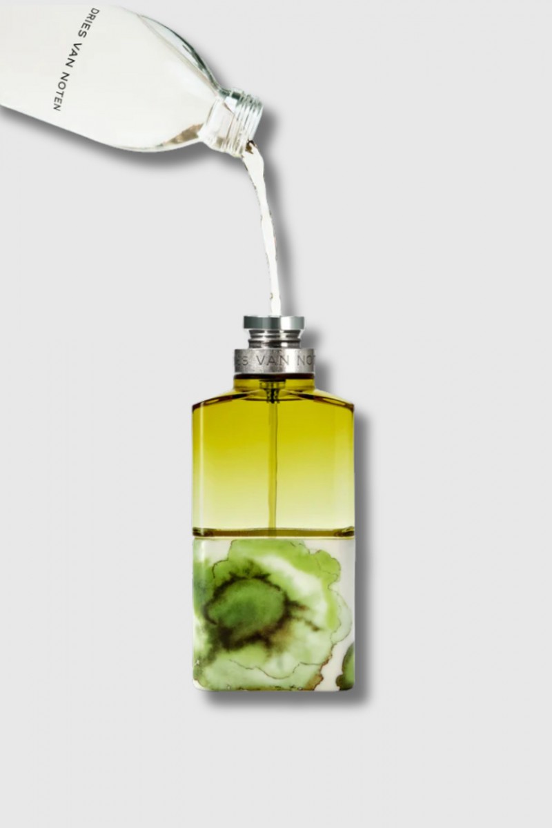 This Vanille Camouflage Refill by Dries Van Noten reveals a subtly refined green vanilla, where the resinous facets of galbanum enhance the richness of the duo of bourbon and Tahitensis vanilla with creamy, almond notes. This unique, soft and progressive composition unfolds with increasing intensity on the skin. The bottle, a fusion of deep green glass and precious porcelain adorned with watercolour floral motifs, embodies the poetic alliance of fashion and art so dear to the House.