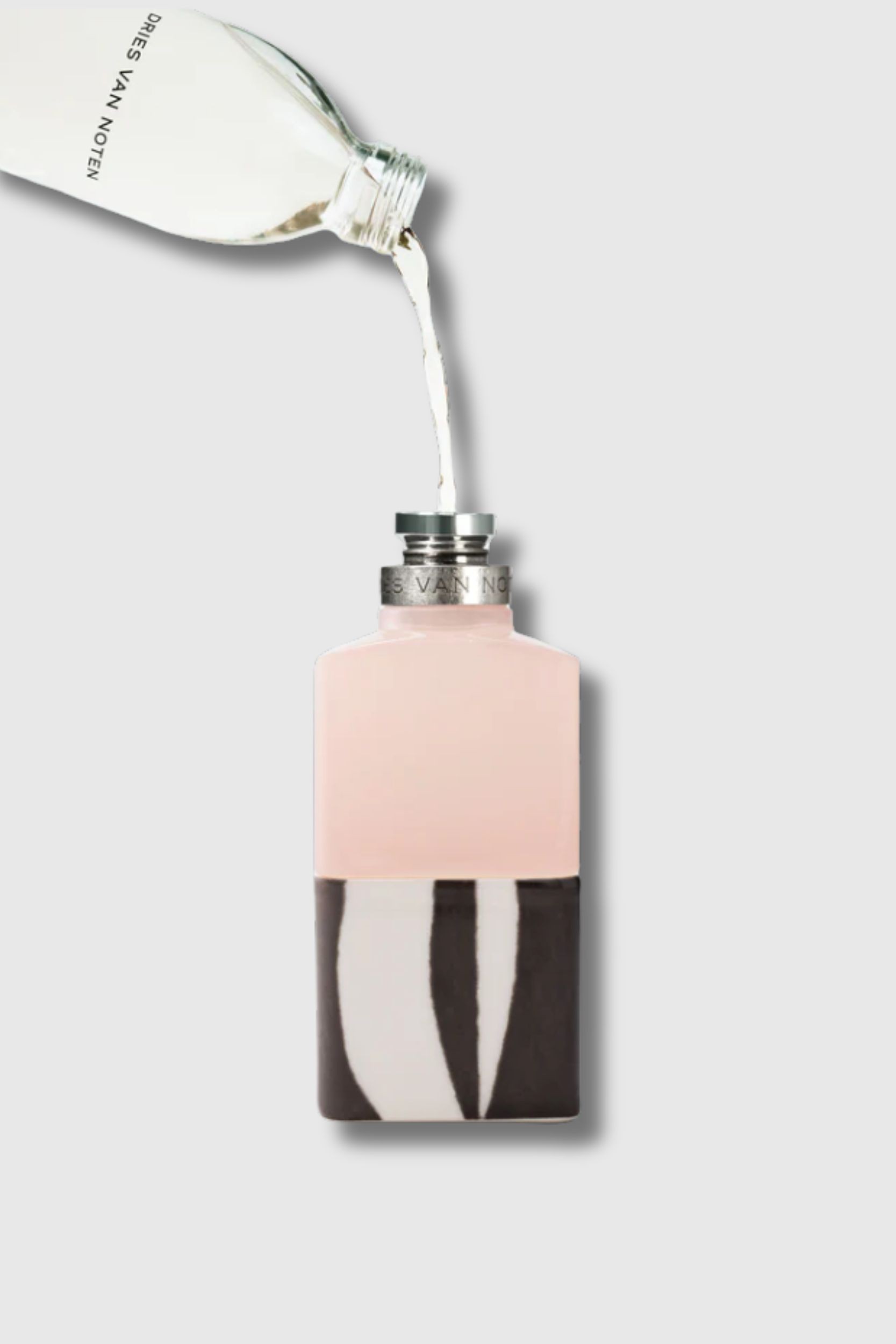This Rosa Carnivora Refill by Dries Van Noten reveals the late autumn Centifolia rose in all its raw and refined beauty. Velvety and sculpted in chiaroscuro, it blossoms in all its wild and imperfect nature, supported by the noble and earthy depth of vetiver. The bottle combines powder pink glass with porcelain decorated with an animal motif, creating a delicate and sophisticated contrast.