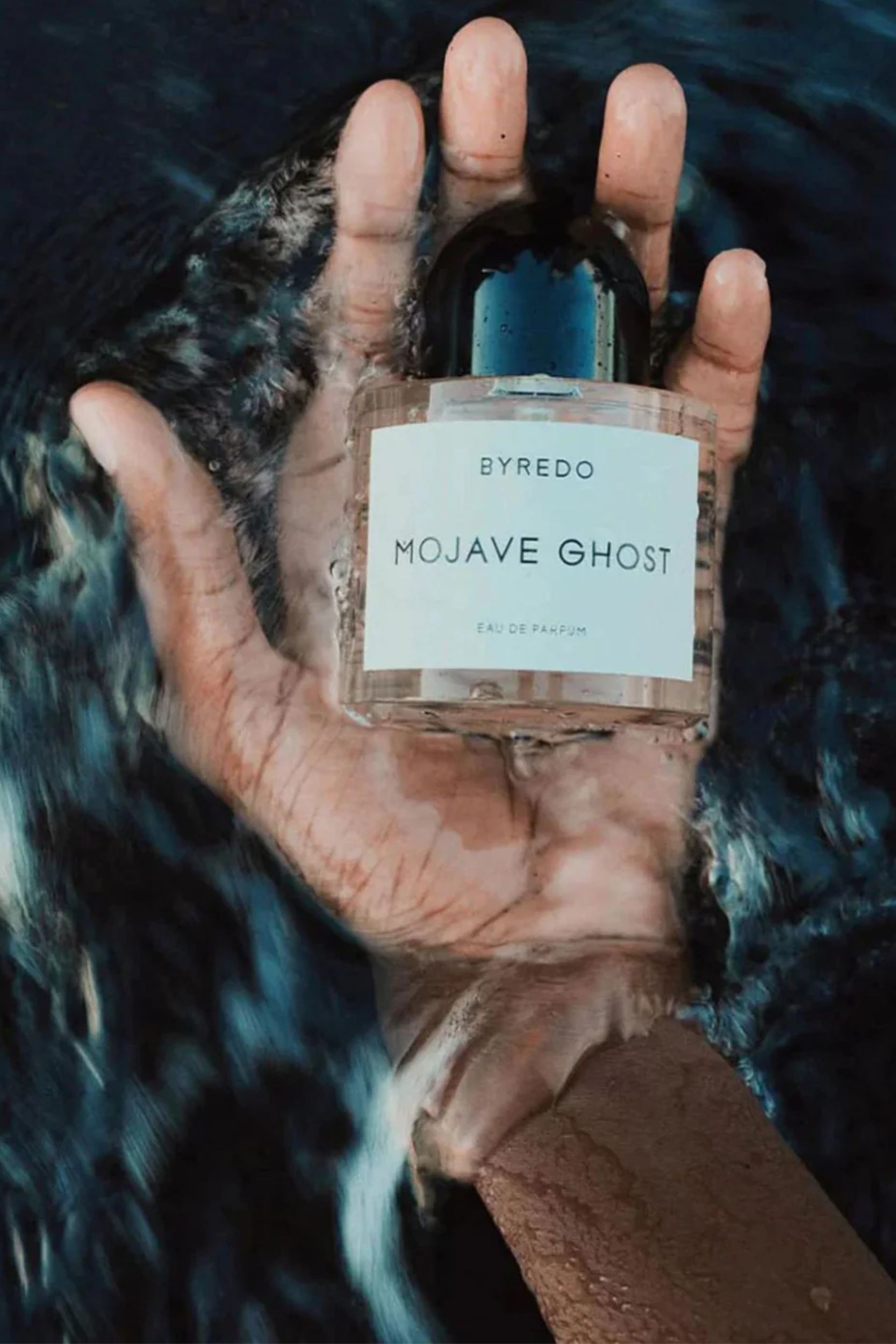 Mojave Ghost from BYREDO. The ghost flower is a rare species that blossom above the wilderness of the Mojave desert. Despite the arid surrundings, the ghost flower attracts pollinators of a neighbouring plant species to survive.