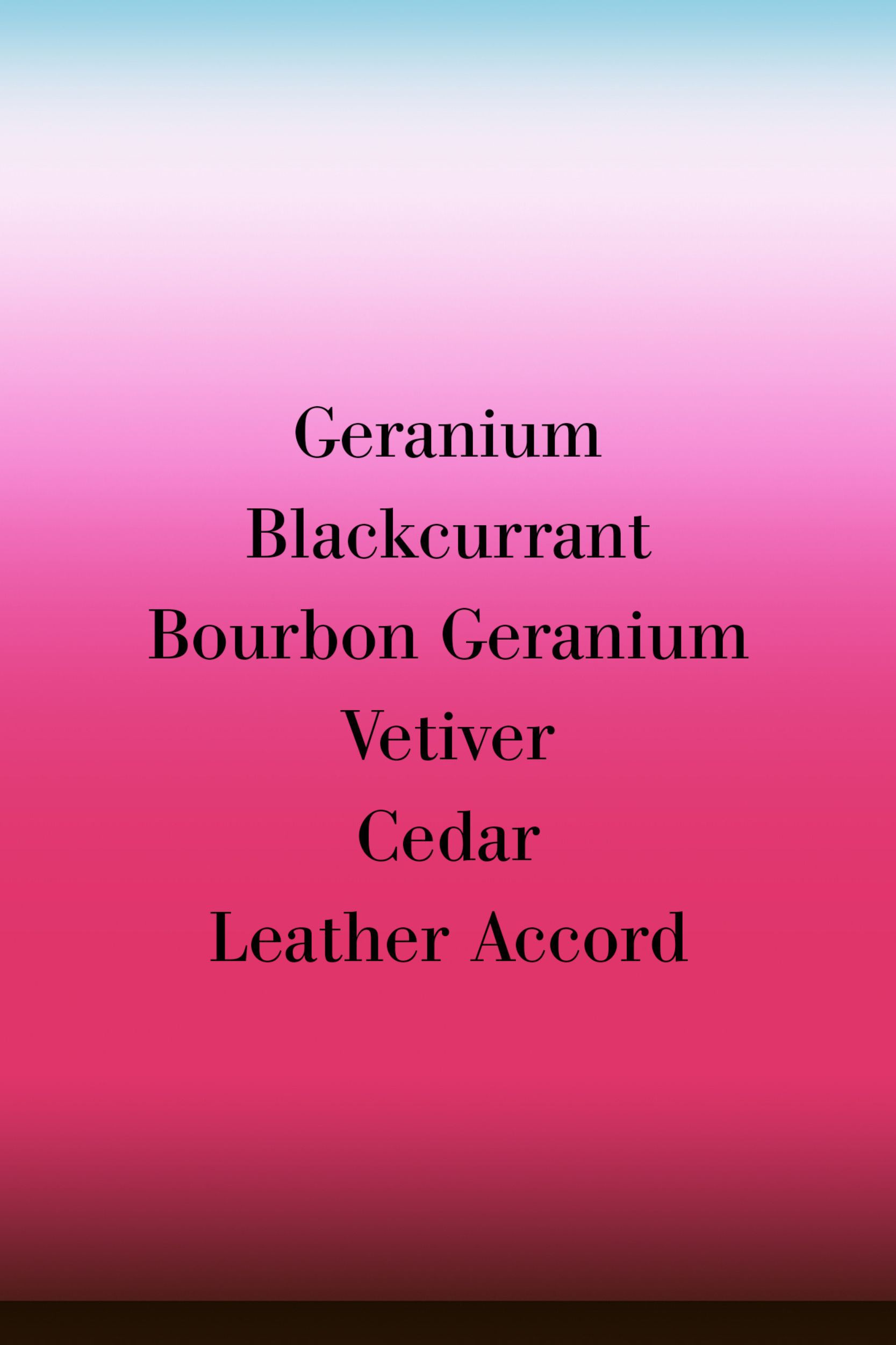 Perfume top notes: geranium, black currant, bourbon geranium