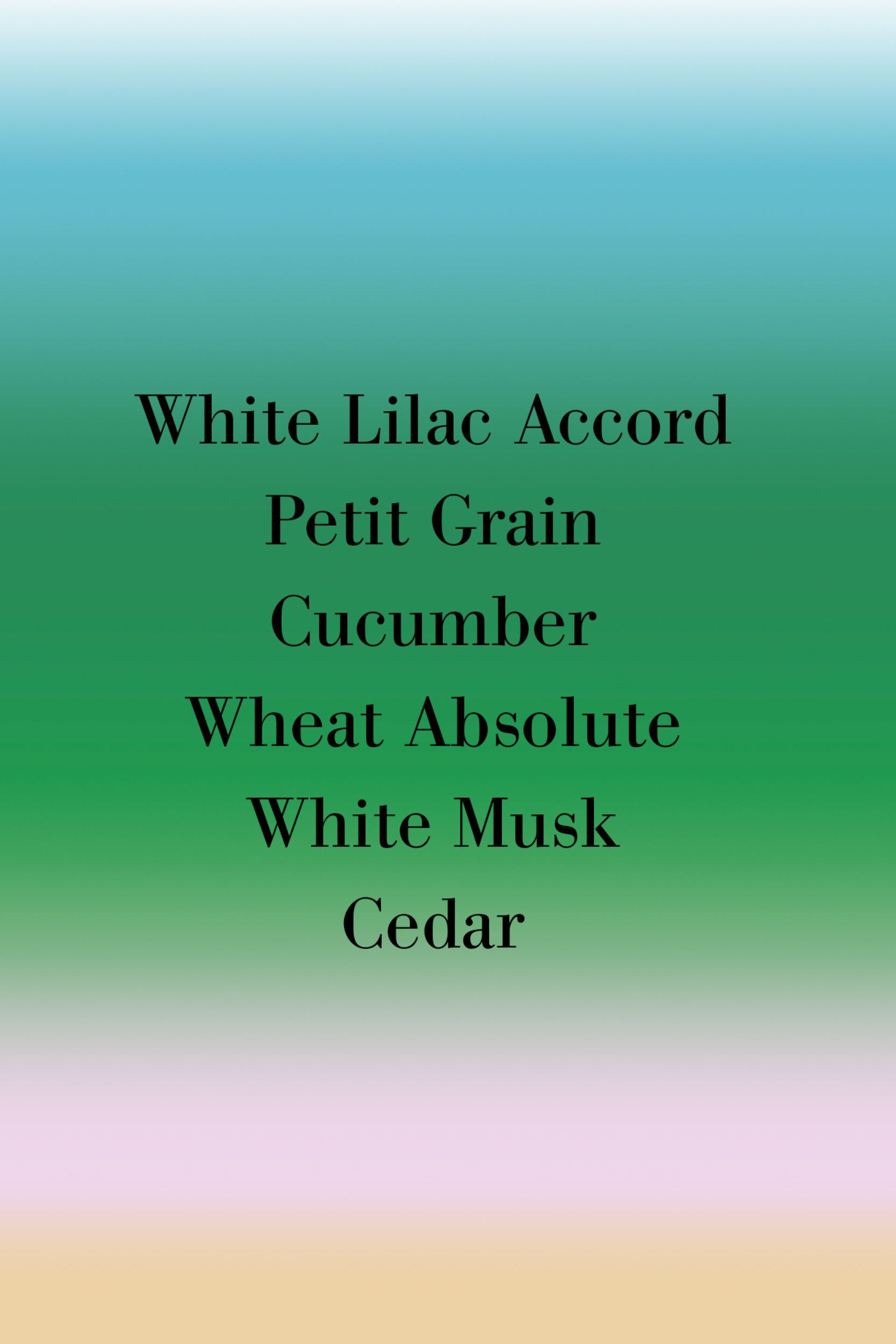A trace of absolute cucumber combined with a very pure lilac gives this perfume an airy freshness, a bed of cedar, wheat and white musk, everything mingles with the skin to dance spring.