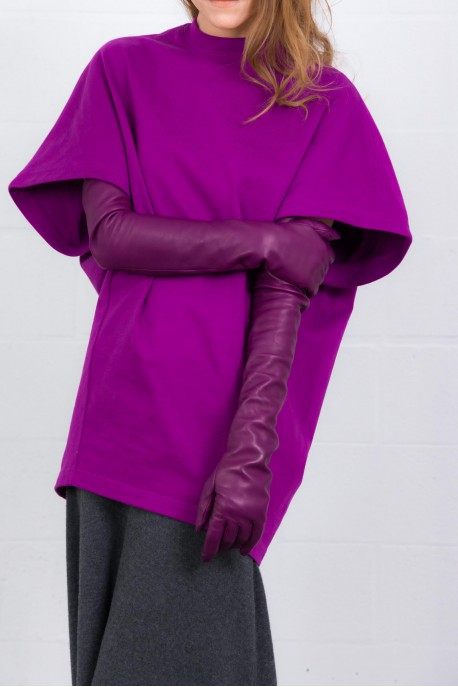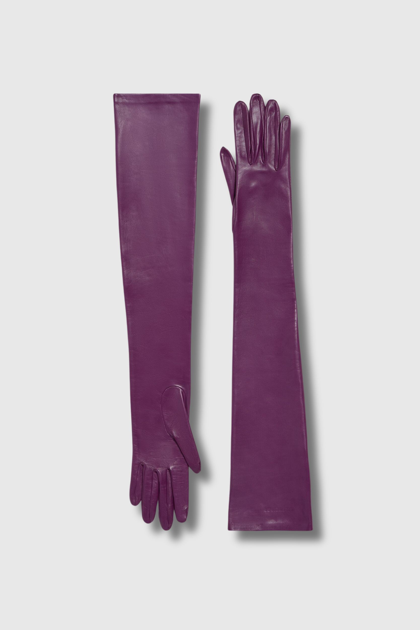 The Long Purple Gloves by Balenciaga embody dramatic, timeless elegance. Crafted from supple lambskin leather, they contour the hand like a second skin, delivering exceptional refinement.
