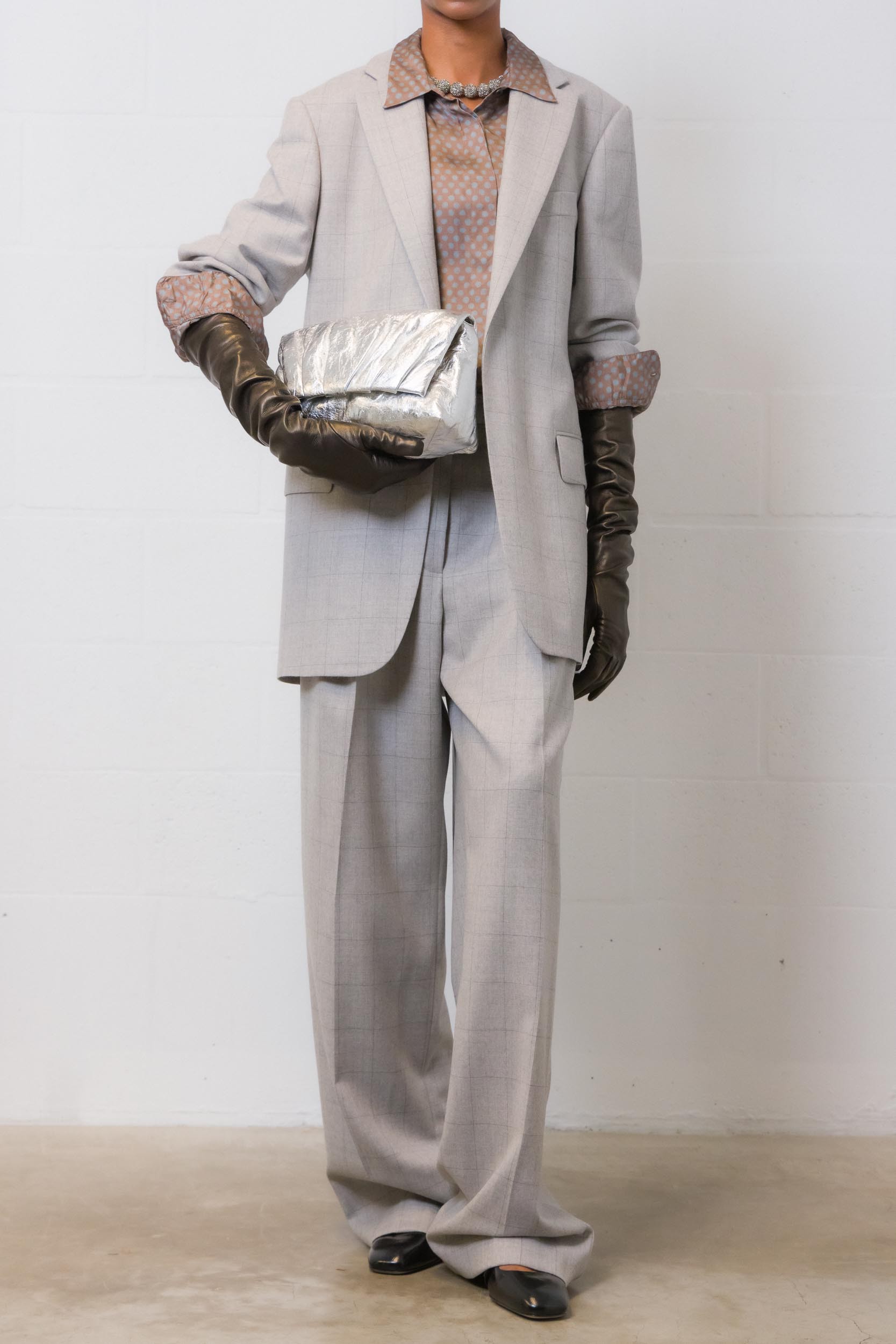 Long cognac leather gloves