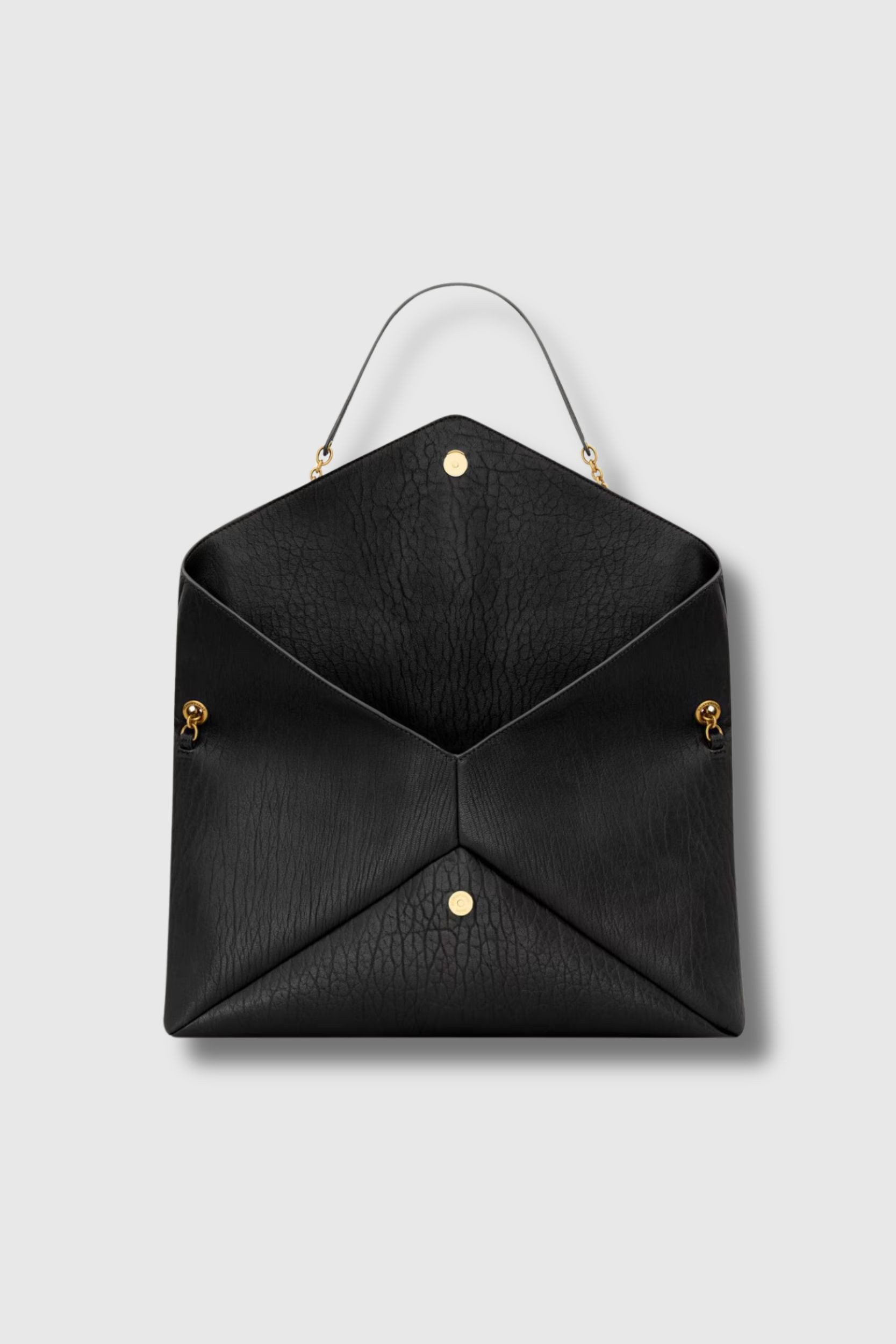This Cassandre XXL bag by Saint Laurent stands out for its generous size and supple lambskin leather with a luxurious feel. Adorned with the iconic Cassandre monogram, it features a light bronze-finish brass chain, offering an elegant shoulder carry or a refined clutch look. Its snap closure opens to reveal a leather lining and an internal zipped pocket, combining style and practicality.