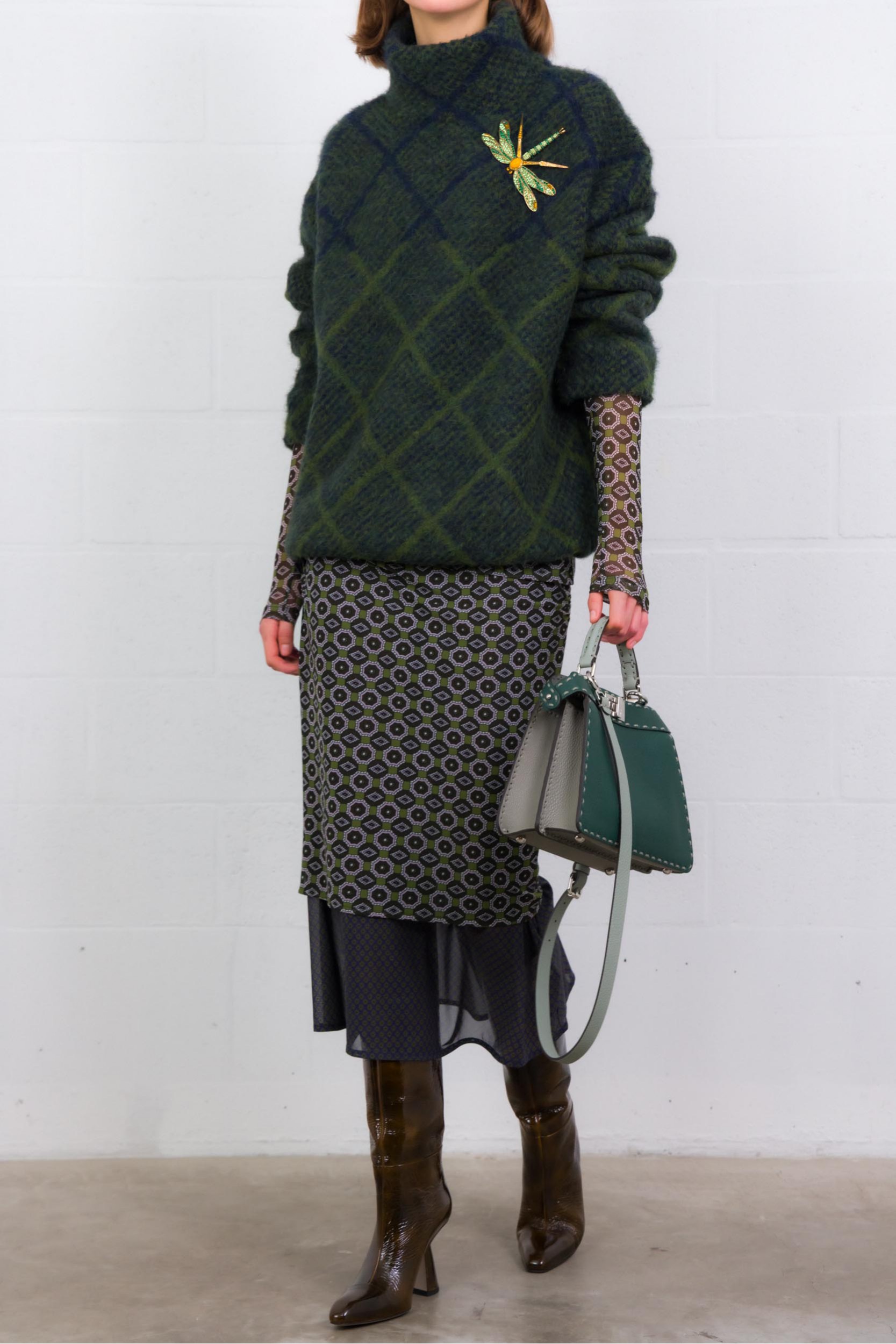 This two-tone medium Peekaboo ISeeU bag is designed by Fendi. An icon of the fashion house, it is crafted from dark green Cuoio Romano leather with dove grey sides, highlighted by 556 large hand-stitched Selleria stitches, a craftsmanship tradition dating back to 1925. Its calfskin-lined interior features two compartments separated by a rigid divider and a pocket. The iconic twist lock, silver Selleria plaque and palladium trim complete the design. Its handle and adjustable, removable matcha green leather shoulder strap allow it to be carried by hand, on the shoulder or across the body.