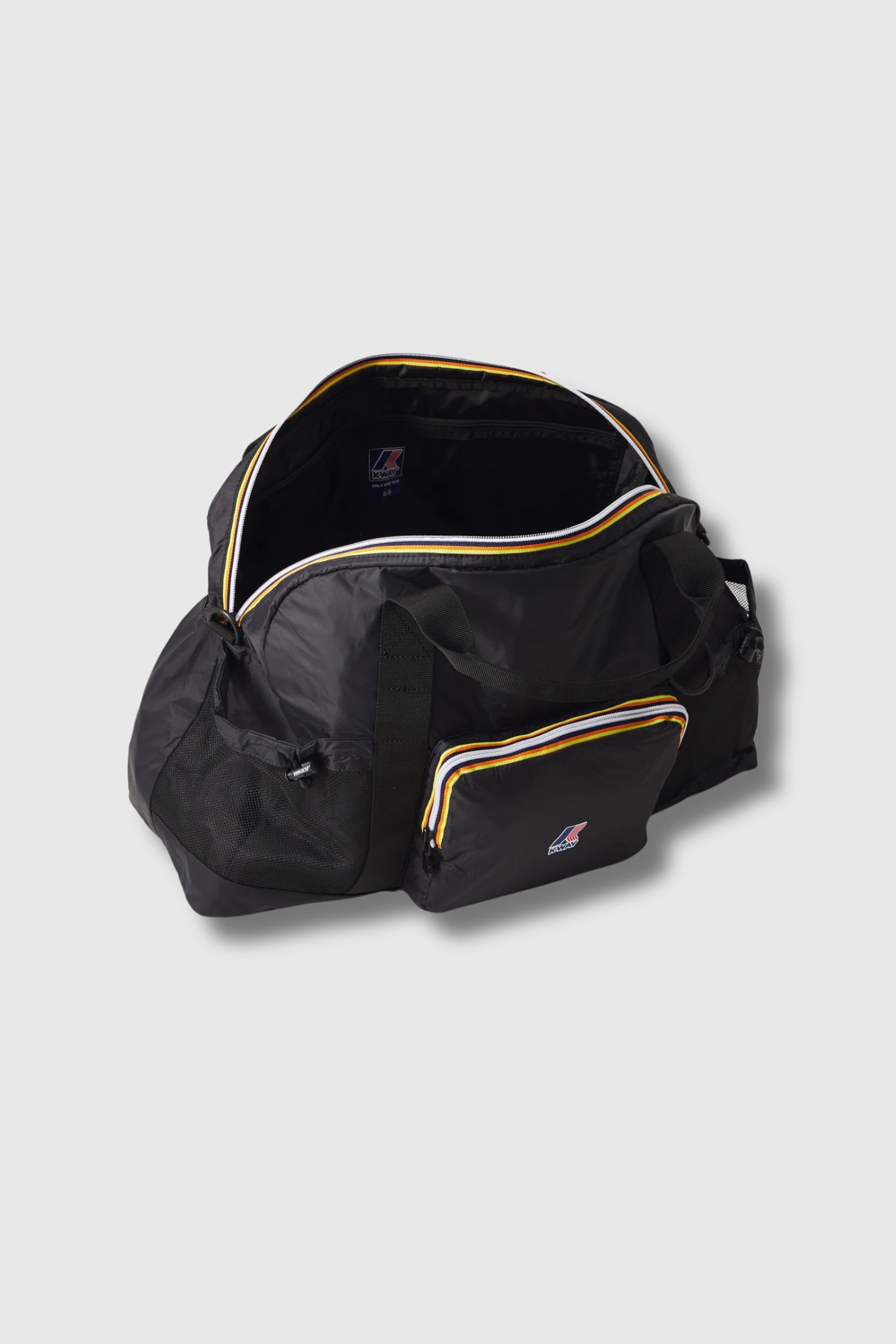 The Marcel black travel bag by K-Way combines functionality with minimalist elegance. Its spacious interior features a front pocket, side pockets, a zip pocket, and a slip pocket for optimal organization. The two-way zip closure ensures easy and secure access, while the luggage strap allows it to be attached to a rolling suitcase. Designed in a solid color, it includes a removable and adjustable crossbody strap for versatile carrying options.
