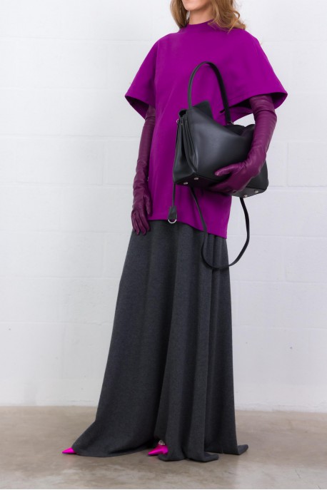 This Rodeo medium bag in smooth black leather is by Balenciaga. Crafted from calfskin, it features aged silver-tone hardware and a turn-lock closure. Designed with a top handle and a removable shoulder strap, it offers versatile carrying options. Functional details include a large front pocket, a main compartment, a zipped inner pocket, and two flat back pockets. Side snap buttons, a removable bell key holder, and brass feet complete the design, lined in nappa lambskin leather.