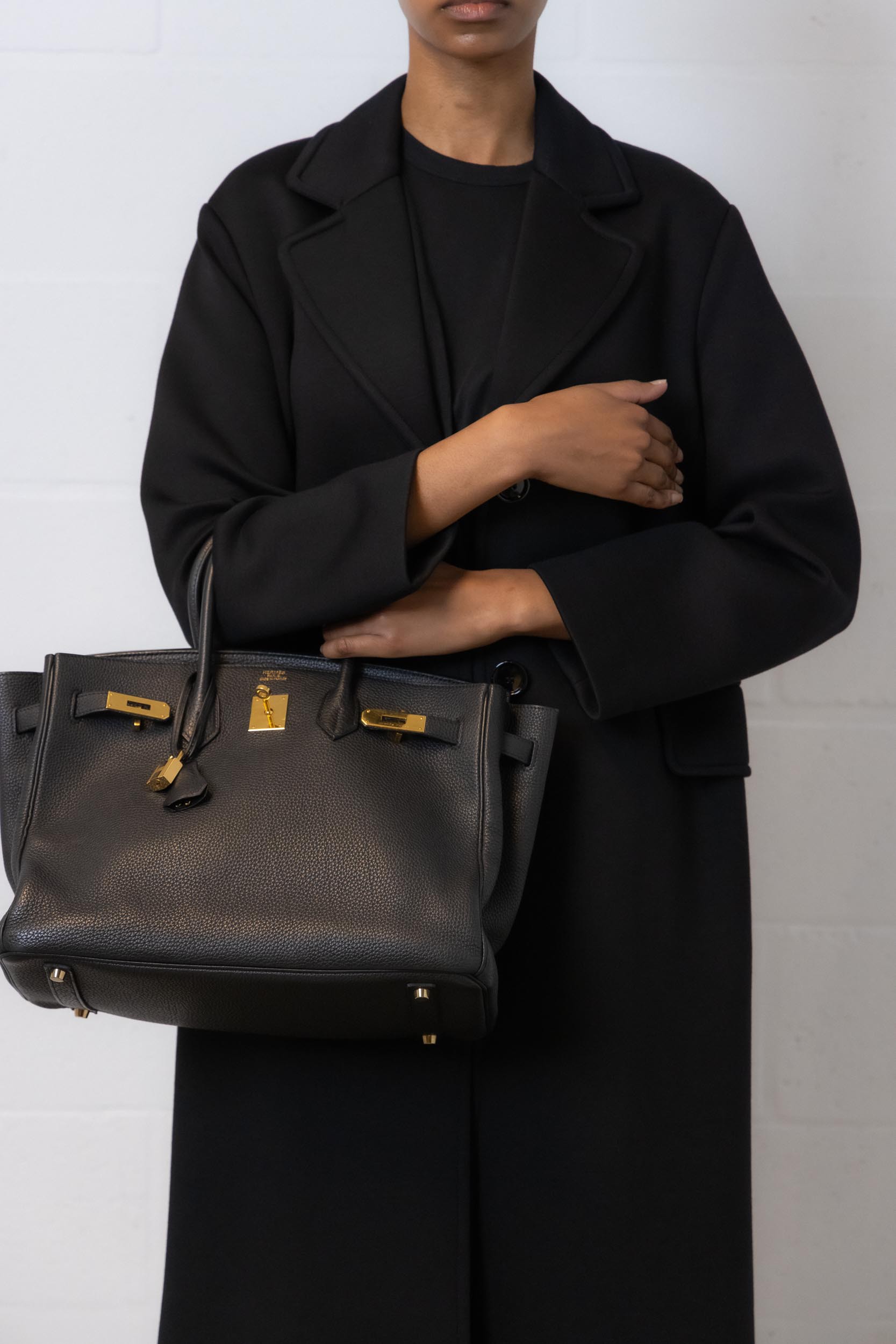 Birkin bag Togo leather black gold details