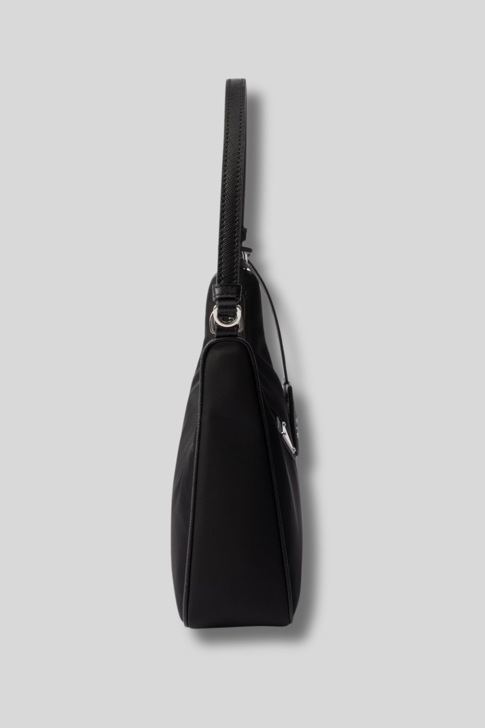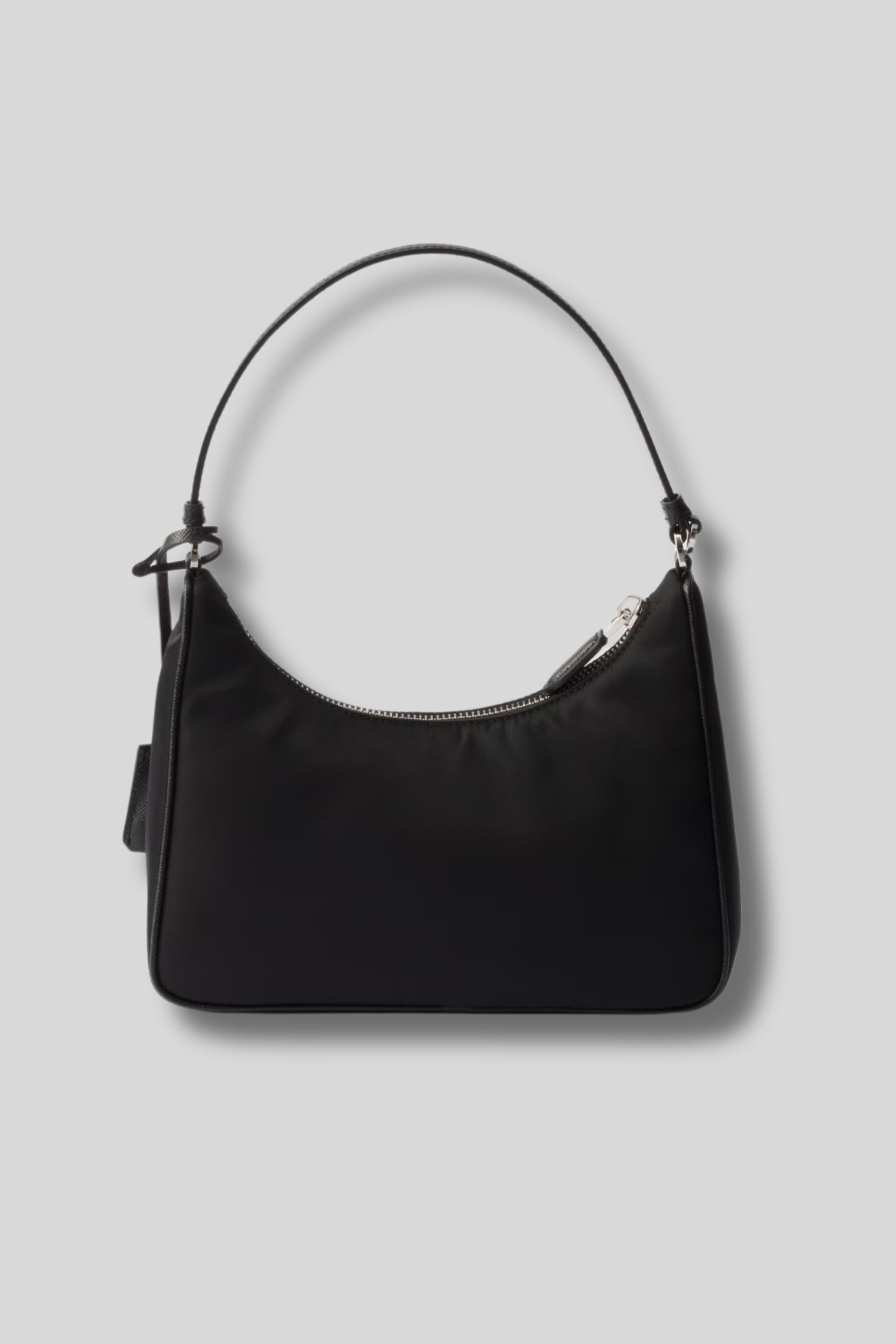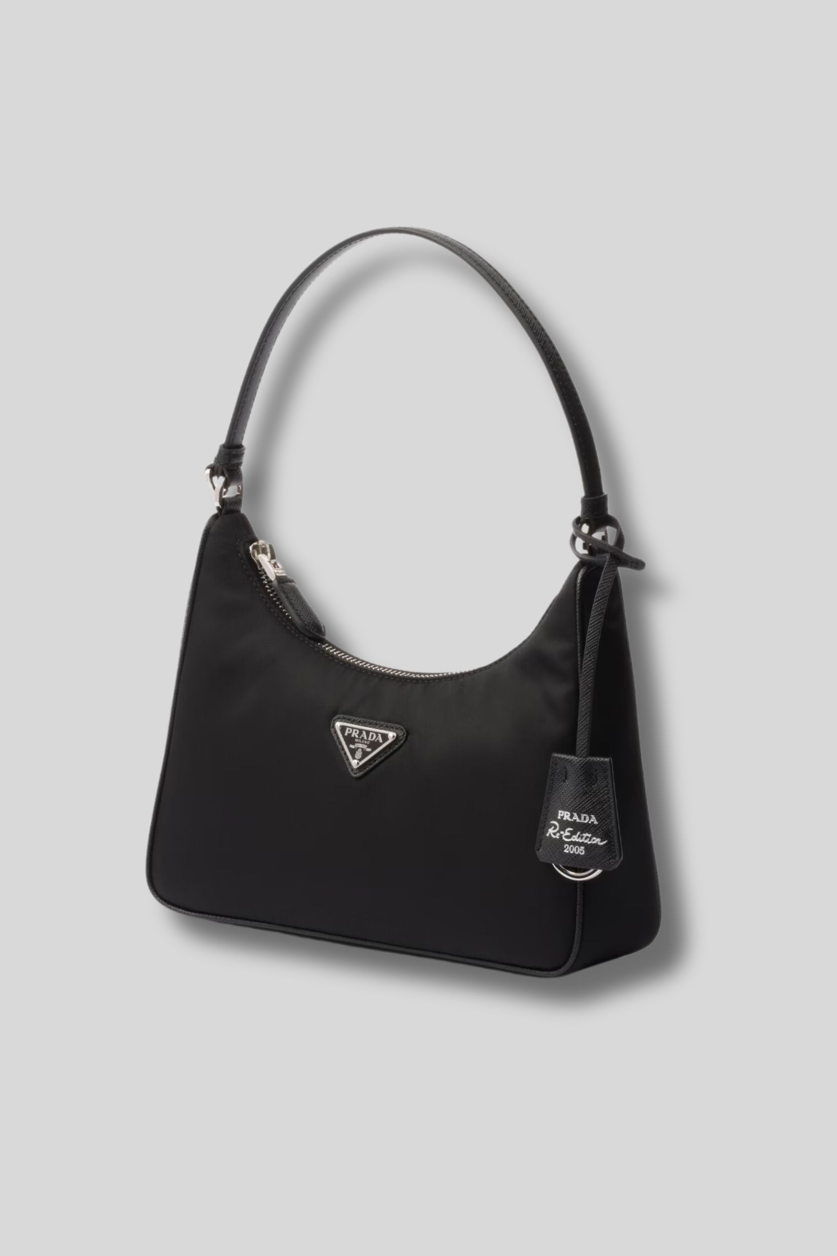 This Re-Edition 2005 bag in black Re-Nylon is designed Prada. Made from recycled nylon, it features a versatile design and is adorned with the iconic gold triangle logo of the Italian brand.