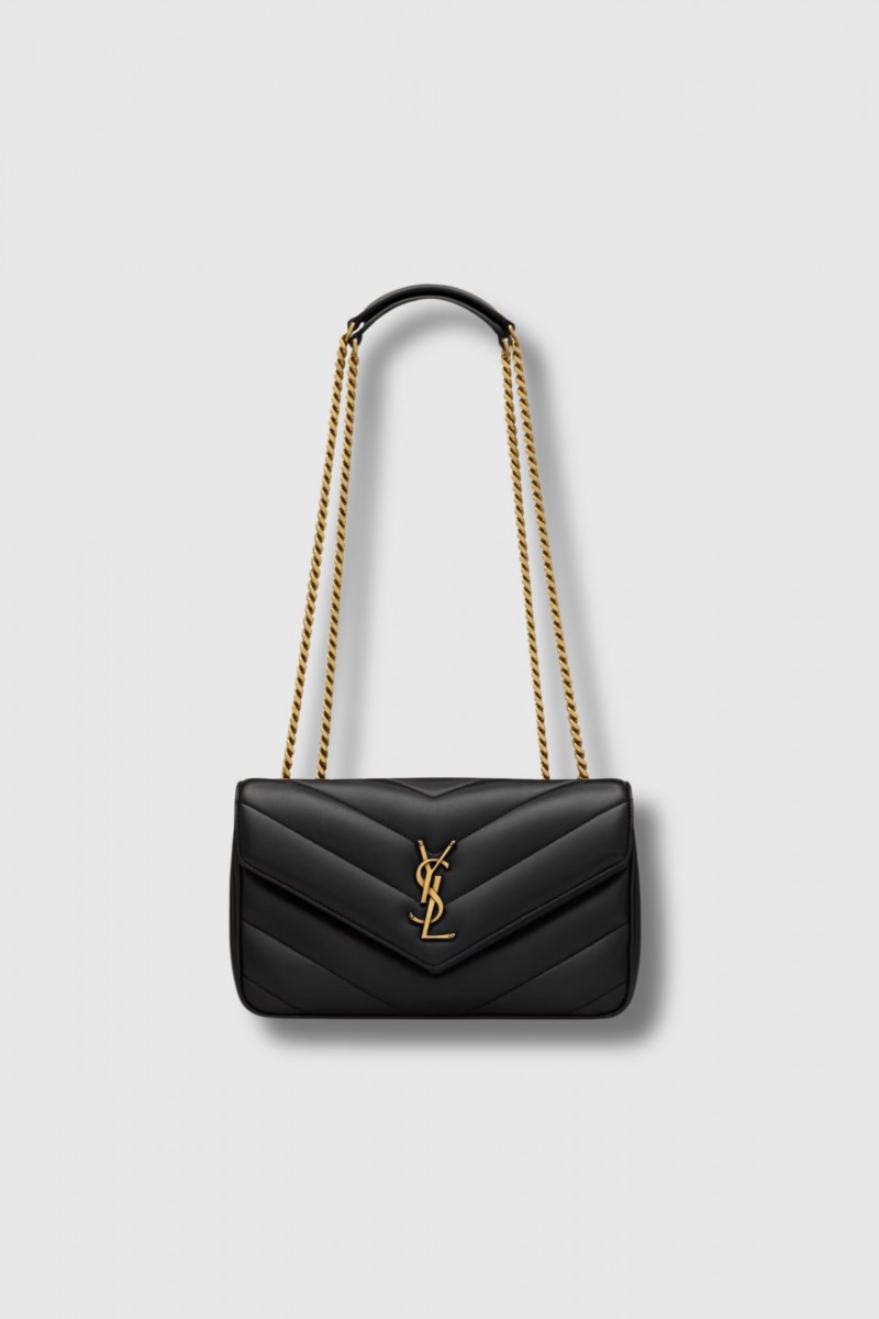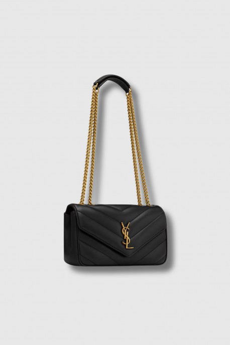 This Loulou Small bag in black leather is designed by Saint Laurent. It features the brand's iconic chevron quilting, a true signature of the House. Crafted with care, it comes with a removable leather pouch and a pocket mirror, combining style and practicality.